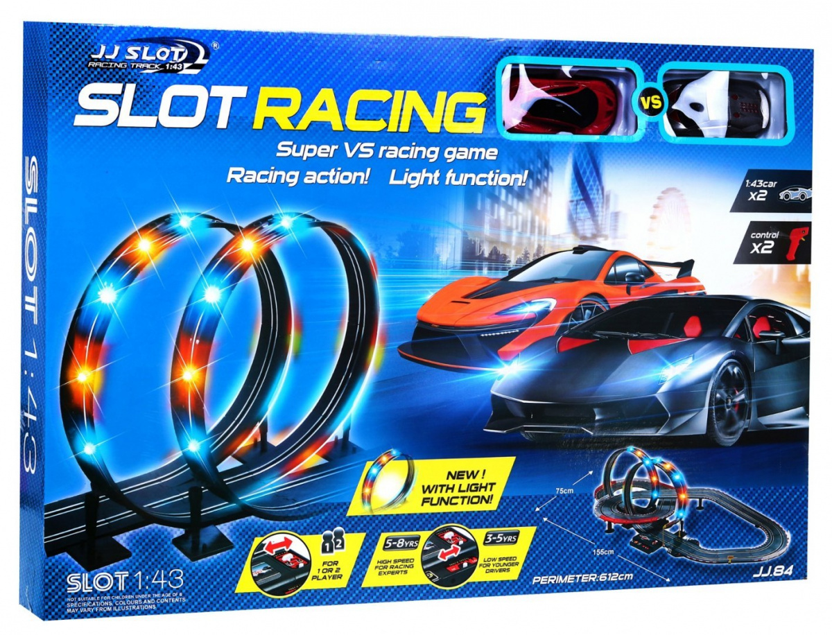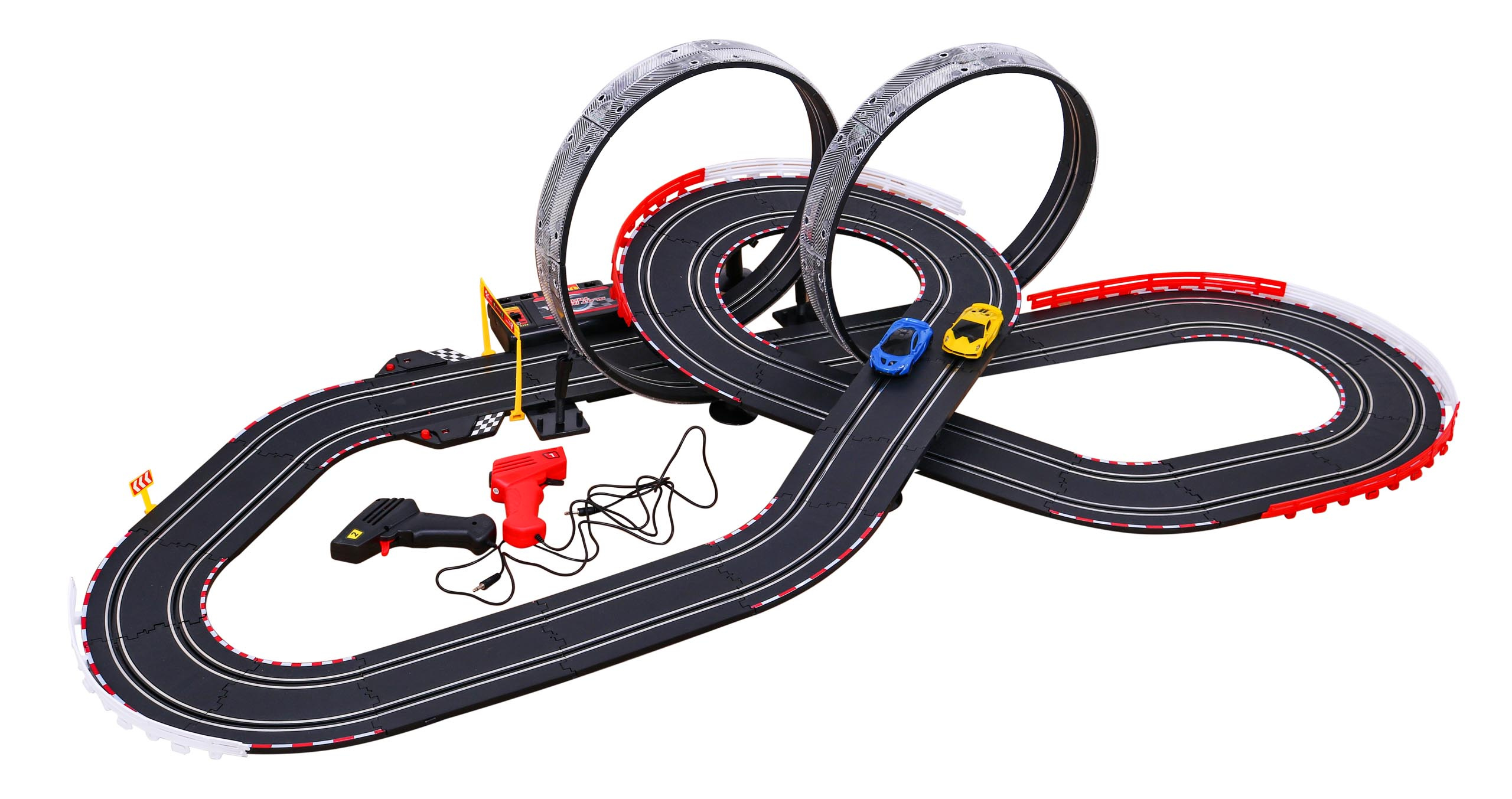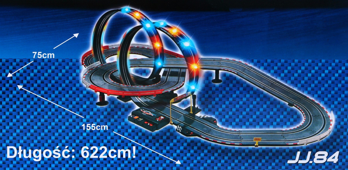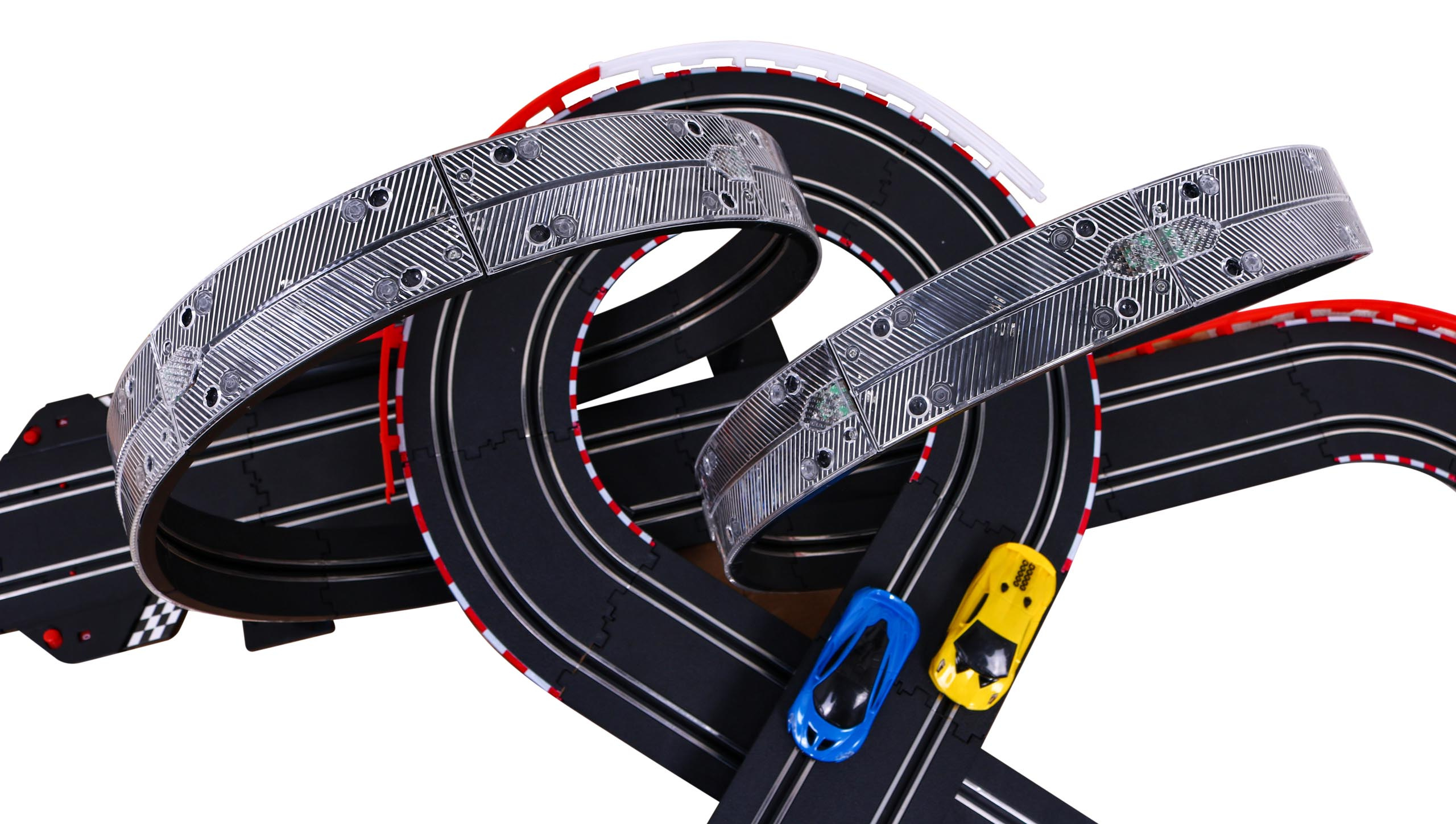 Dráha je poháněna pohonem. Jednotlivé stavební bloky vám umožní postavit dráhu s ostrými zatáčkami, spirálami a rovnými úseky, které maximalizují zábavu a dodávají celému zážitku vzrušení. Bonusem jsou osvětlené smyčky.