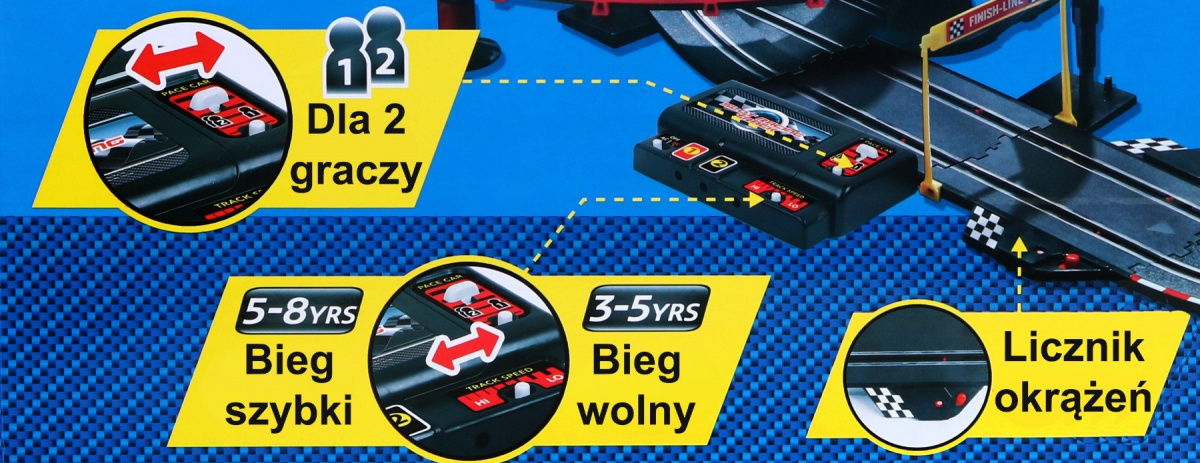 Dráha má 2 rychlostní režimy - rychlý/pomalý a počítadlo kol.