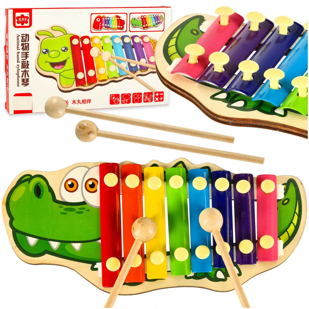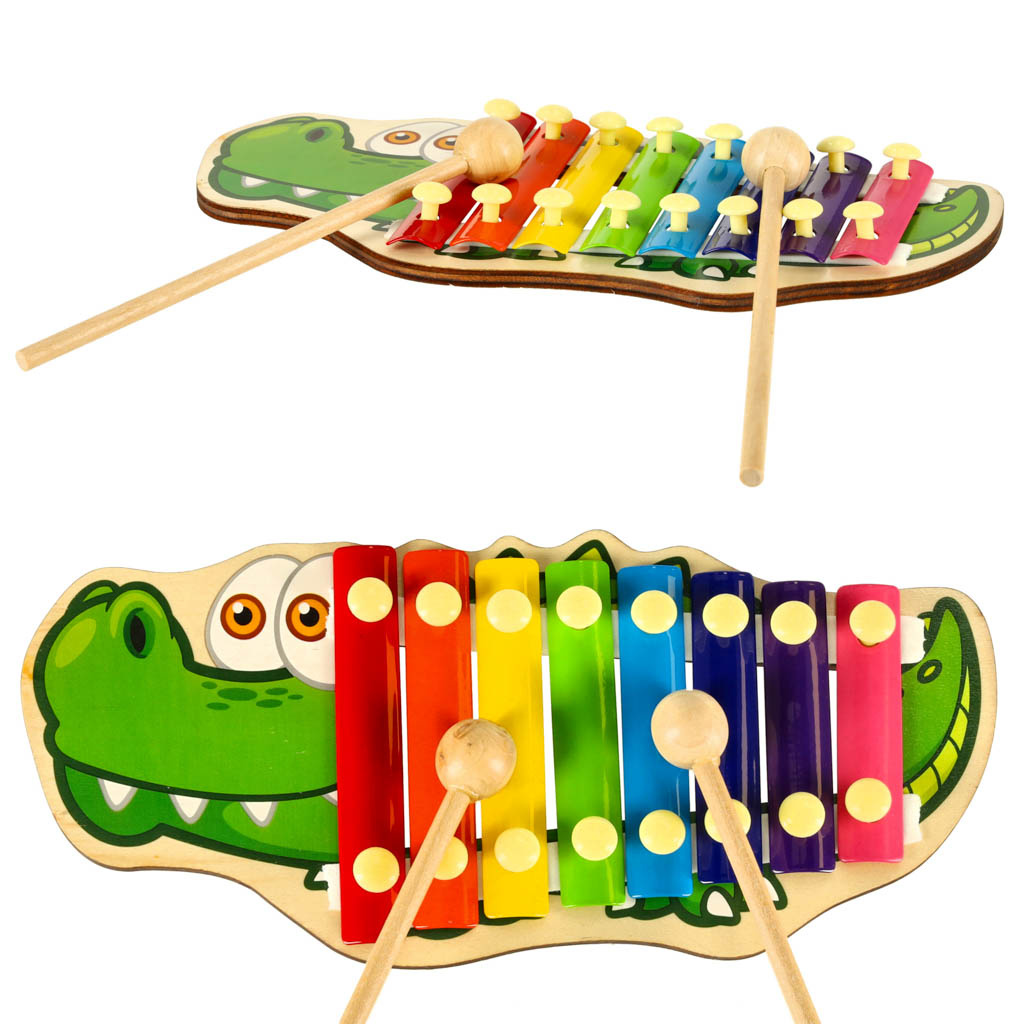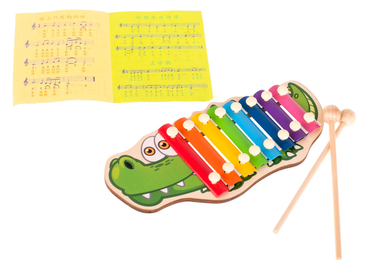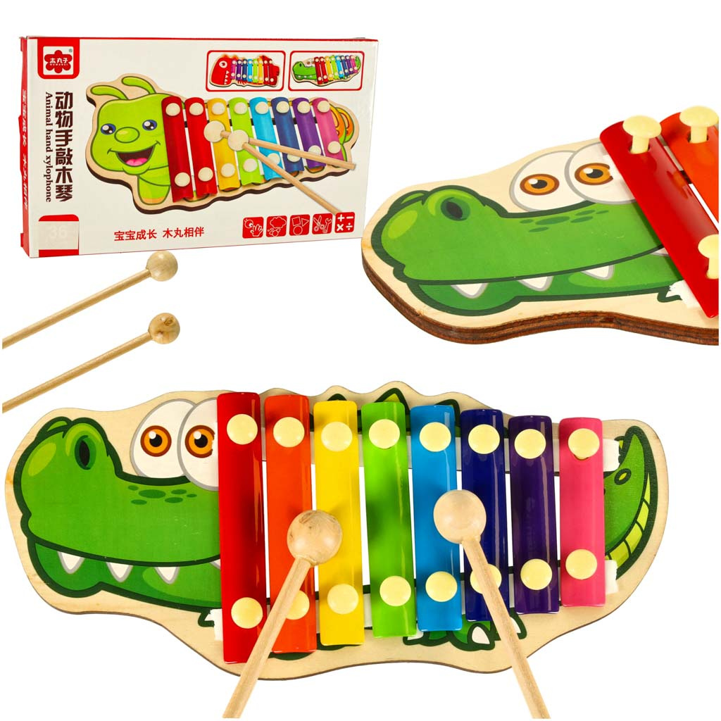 Barevný dřevěný Xylofon je ideální pro začínající hudebníky. Xylofon je vyroben z osmi kovových desek různých barev. Hra s nástrojem učí děti rozeznávat zvuky a prospívá jejich smyslu pro rytmus. Navíc podněcuje kreativitu a tvůrčí myšlení, učí trpělivosti a zlepšuje paměť a soustředění. Osm různých zvuků vám umožní hrát jednoduché melodie.