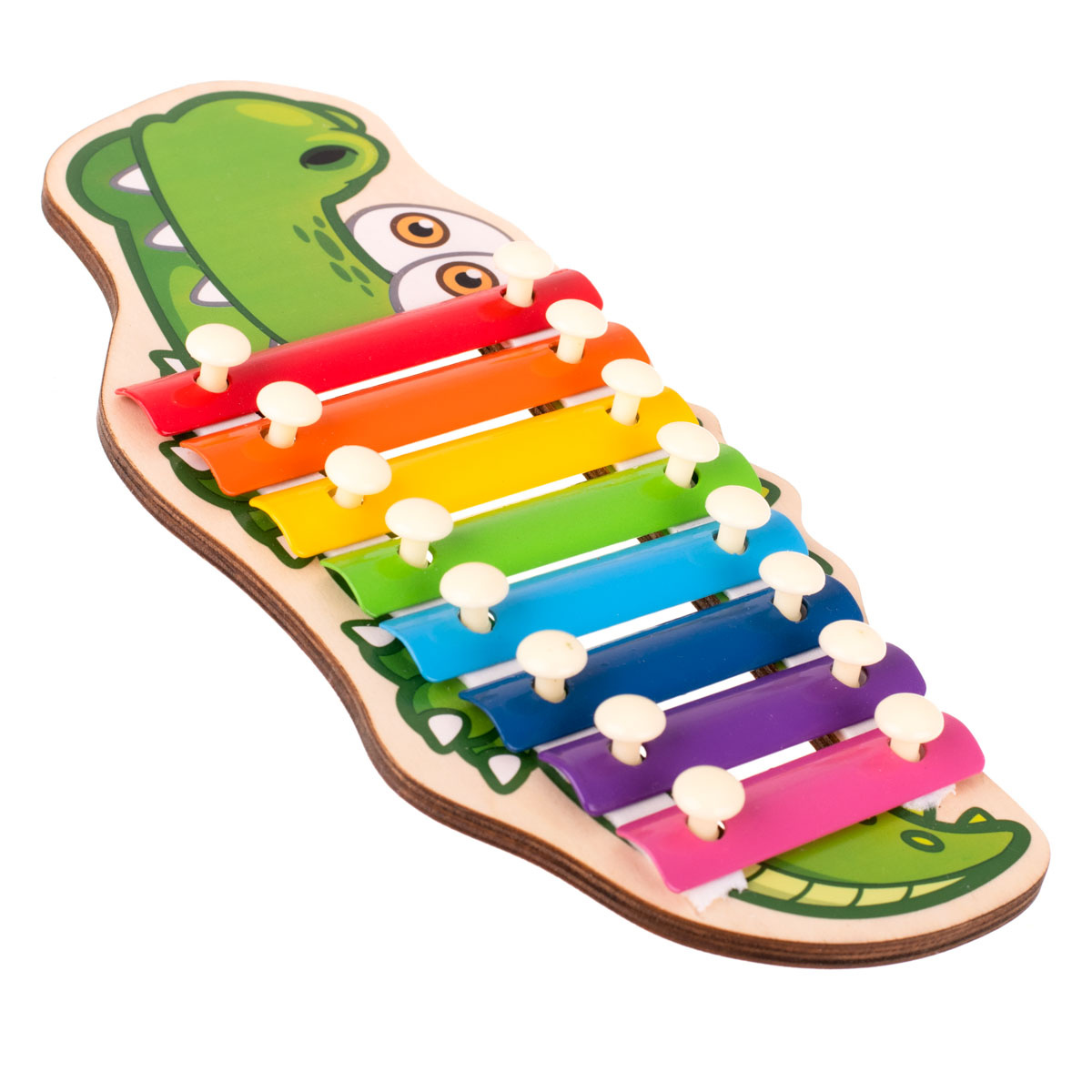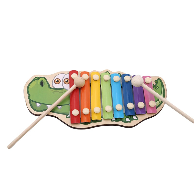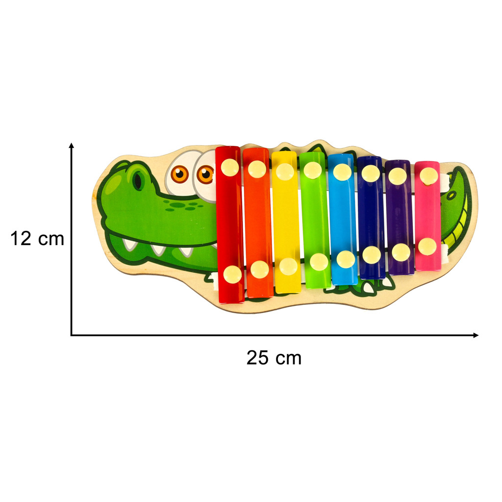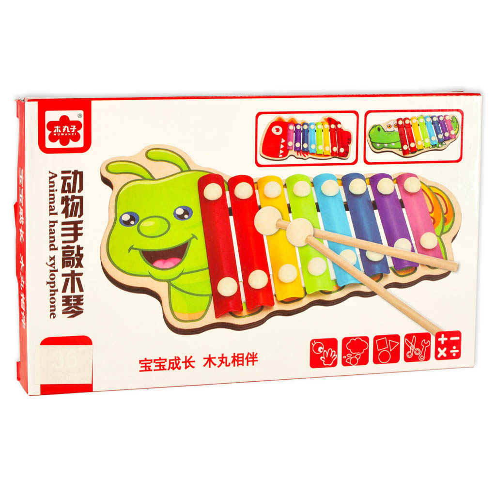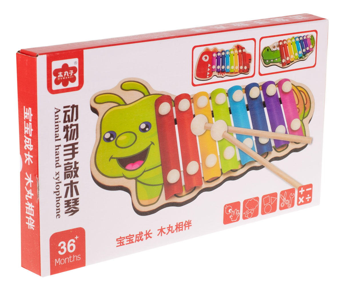 Barevný dřevěný Xylofon je ideální pro začínající hudebníky. Xylofon je vyroben z osmi kovových desek různých barev. Hra s nástrojem učí děti rozeznávat zvuky a prospívá jejich smyslu pro rytmus. Navíc podněcuje kreativitu a tvůrčí myšlení, učí trpělivosti a zlepšuje paměť a soustředění. Osm různých zvuků vám umožní hrát jednoduché melodie.