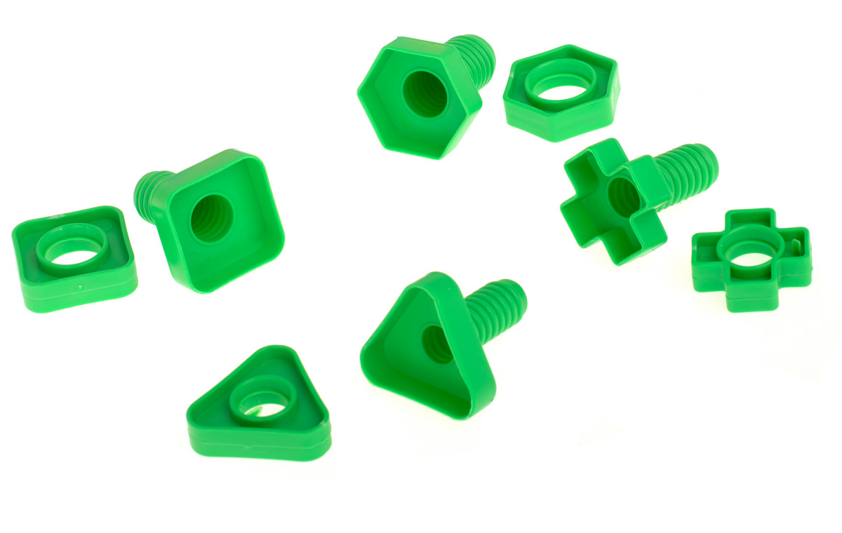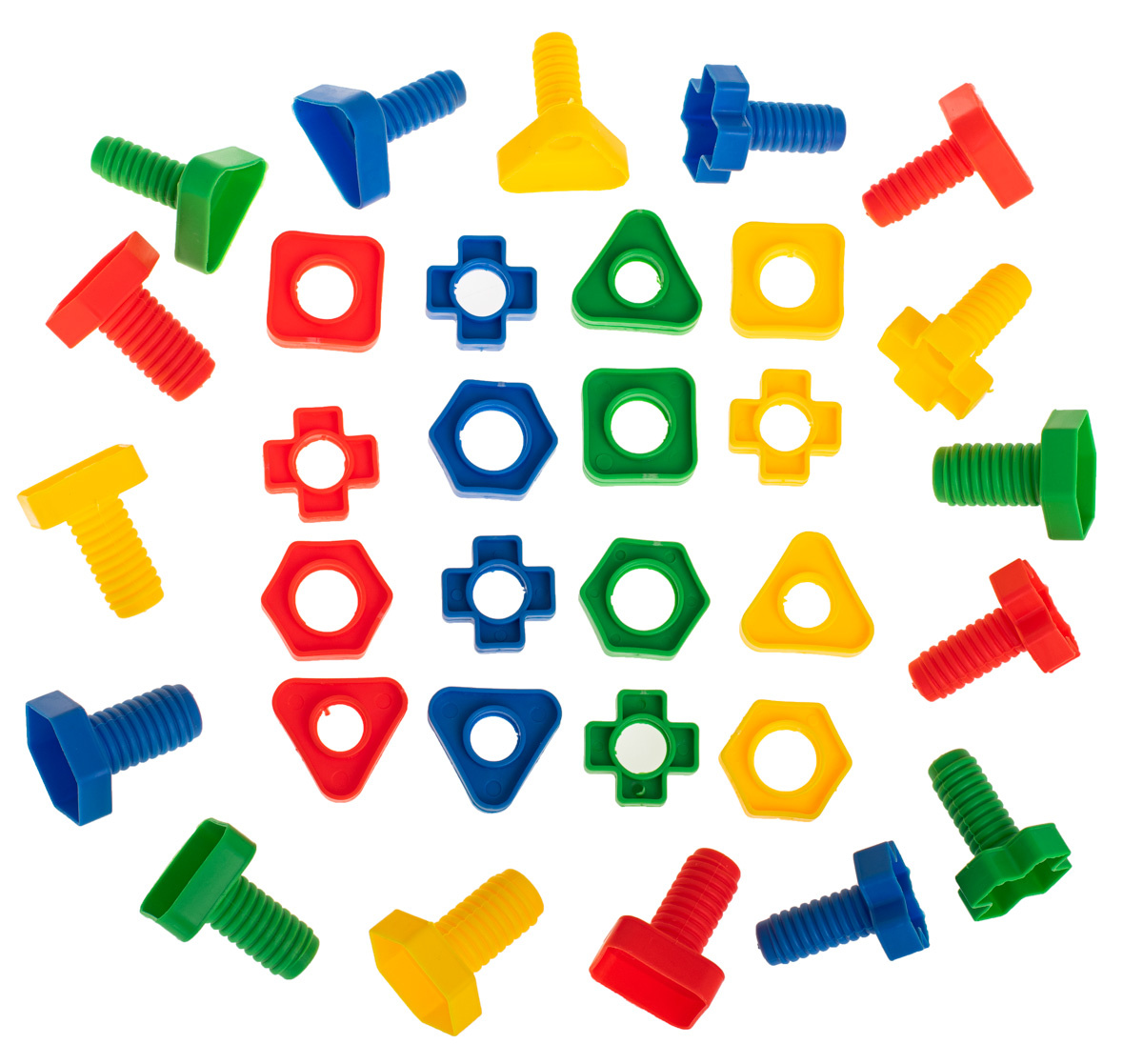 Konstrukční stavebnice šroubů a matek pro malé kutily.