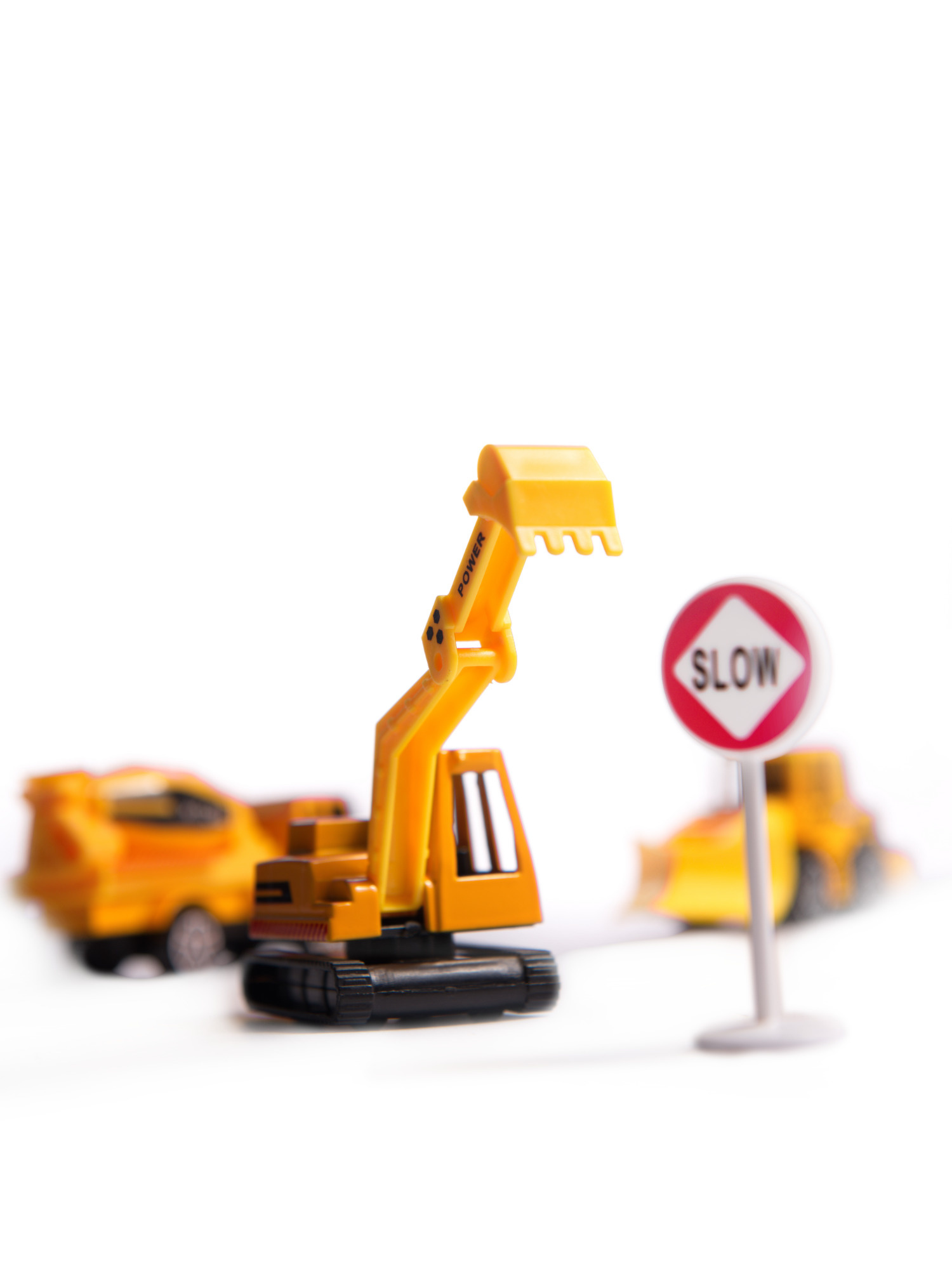 - 3 stavební stroje žluté barvy