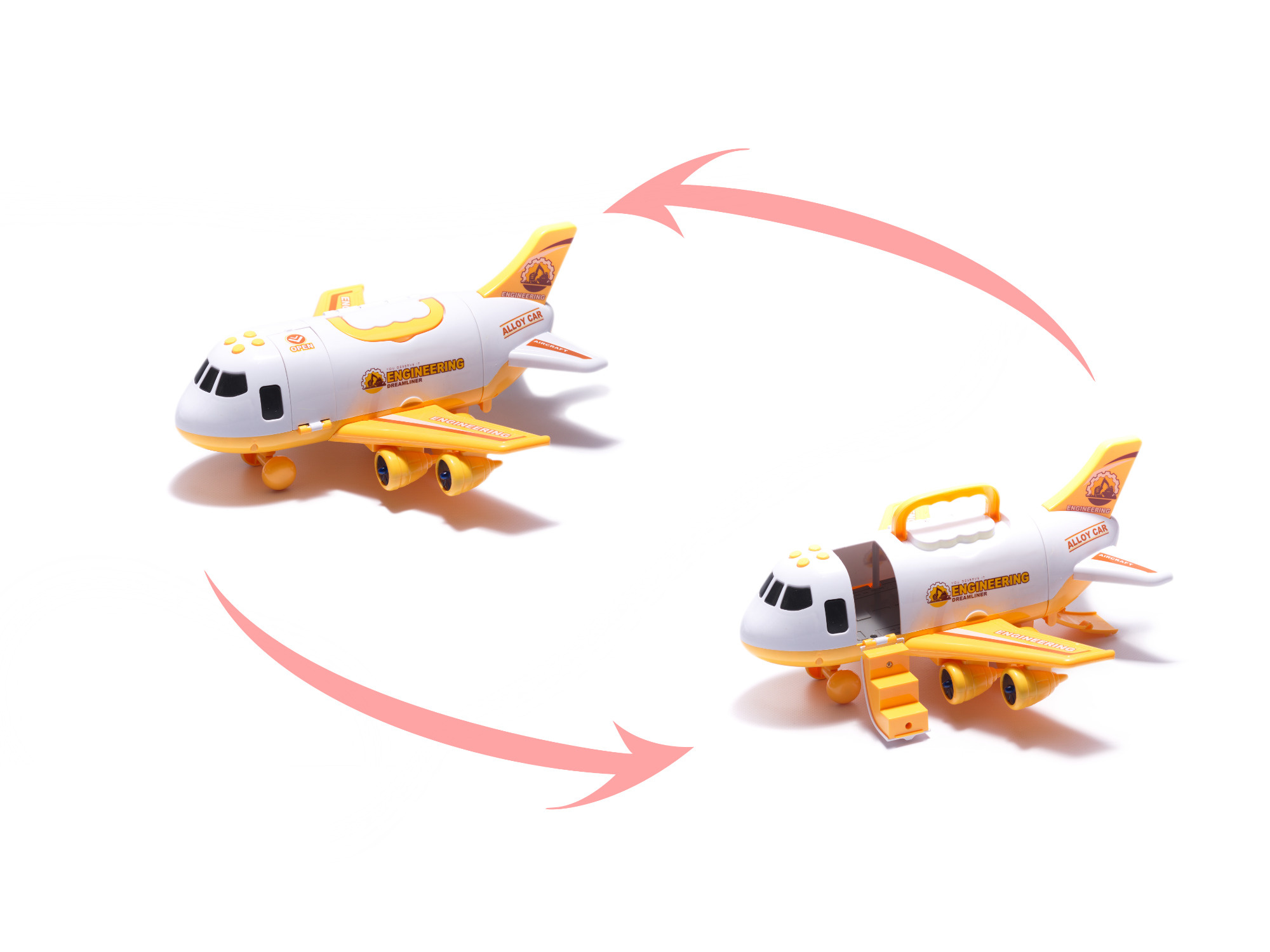 Obrovský a ambiciózní stavební projekt se neobejde bez těžké stavební techniky. Bez bagru a míchačky na beton nelze postavit žádnou slušnou stavbu! Použijte letadlo k přepravě vybavení na staveniště. Letadlo jako skutečný transportér těžké techniky, má na zádi klesající rampu která umožňuje vjezd vozidel. Lze otevřít i ze strany ,aby se s hračkami uvnitř lépe manipulovalo.