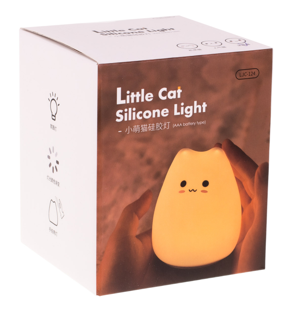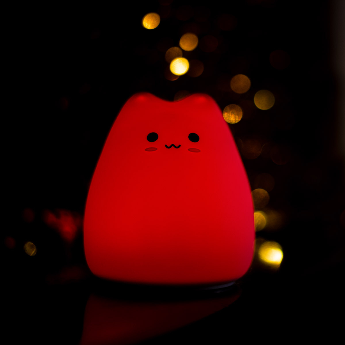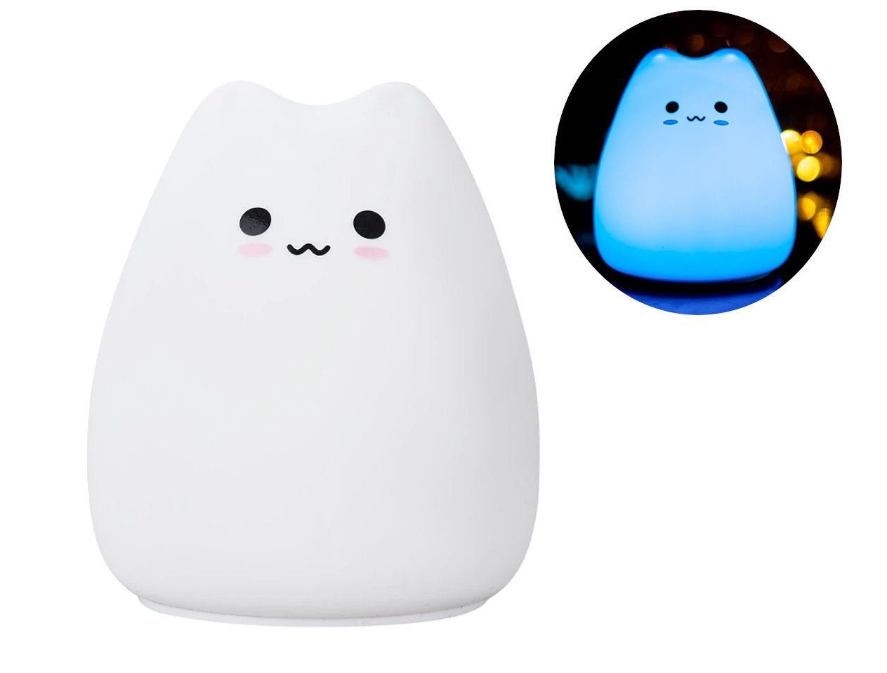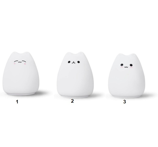 Poklepejte na kočičku a barva se změní prolnutím. Poklepejte na kočičku dvakrát a zůstane svítit stejnou barvou. Před použitím kočičku jednoduše nabijte pomocí přibaleného kabelu USB. To samé opakujte, když jí dojdou síly.