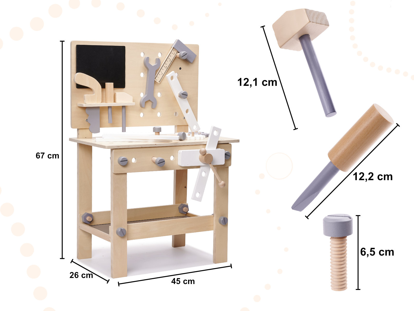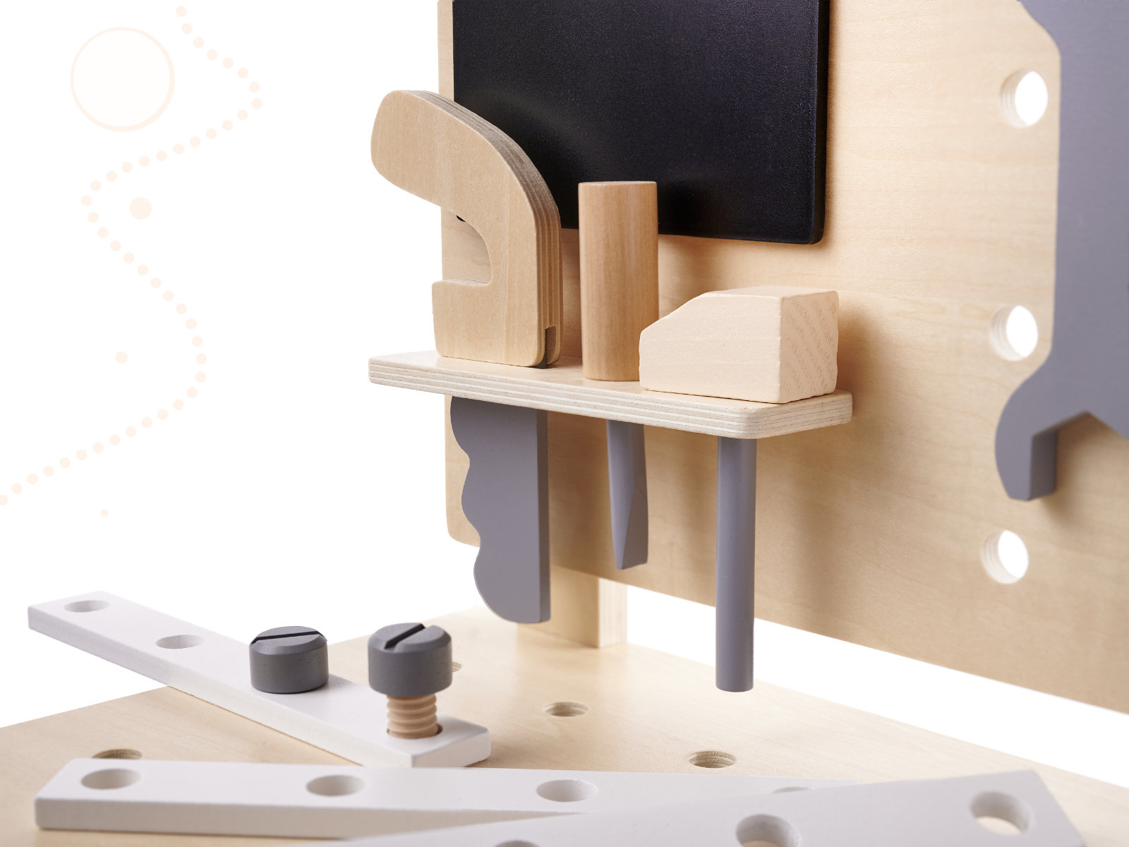 Dětská dílna s nářadím je skvělou edukační hračkou pro malé kutily. Učí dítě rozlišovat tvary a barvy, pomáhá zlepšit manuální zručnost a obratnost, rozvíjí představivost a koncentraci dítěte.