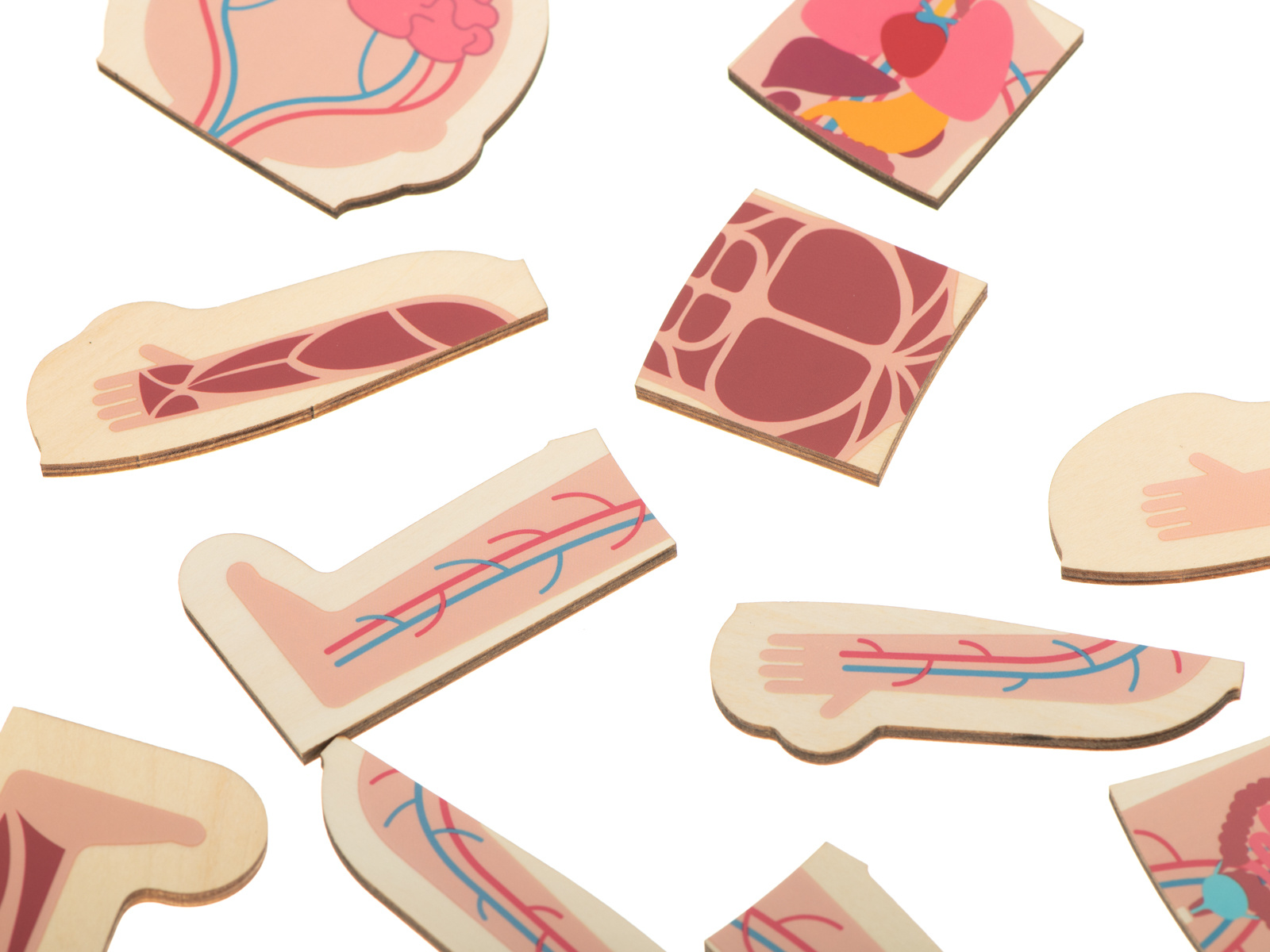 Puzzle ukazují lidský průřez včetně kostí, vnitřních orgánů, svalů a těla