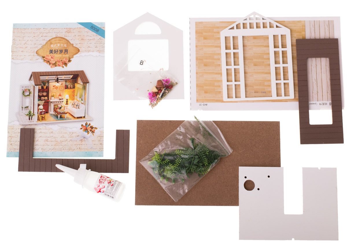Dřevěný domeček pro panenky / obývací pokoj s nábytkem
