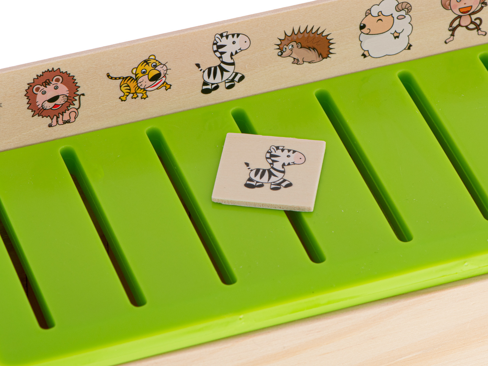 Fantastická vzdělávací skládačka pro nejmenší, která nejen zabaví, ale také podpoří správný vývoj vašeho dítěte. Hra spočívá v házení stejného obrázku, jaký je na velké dřevěné desce nad otvorem, do příslušného otvoru.