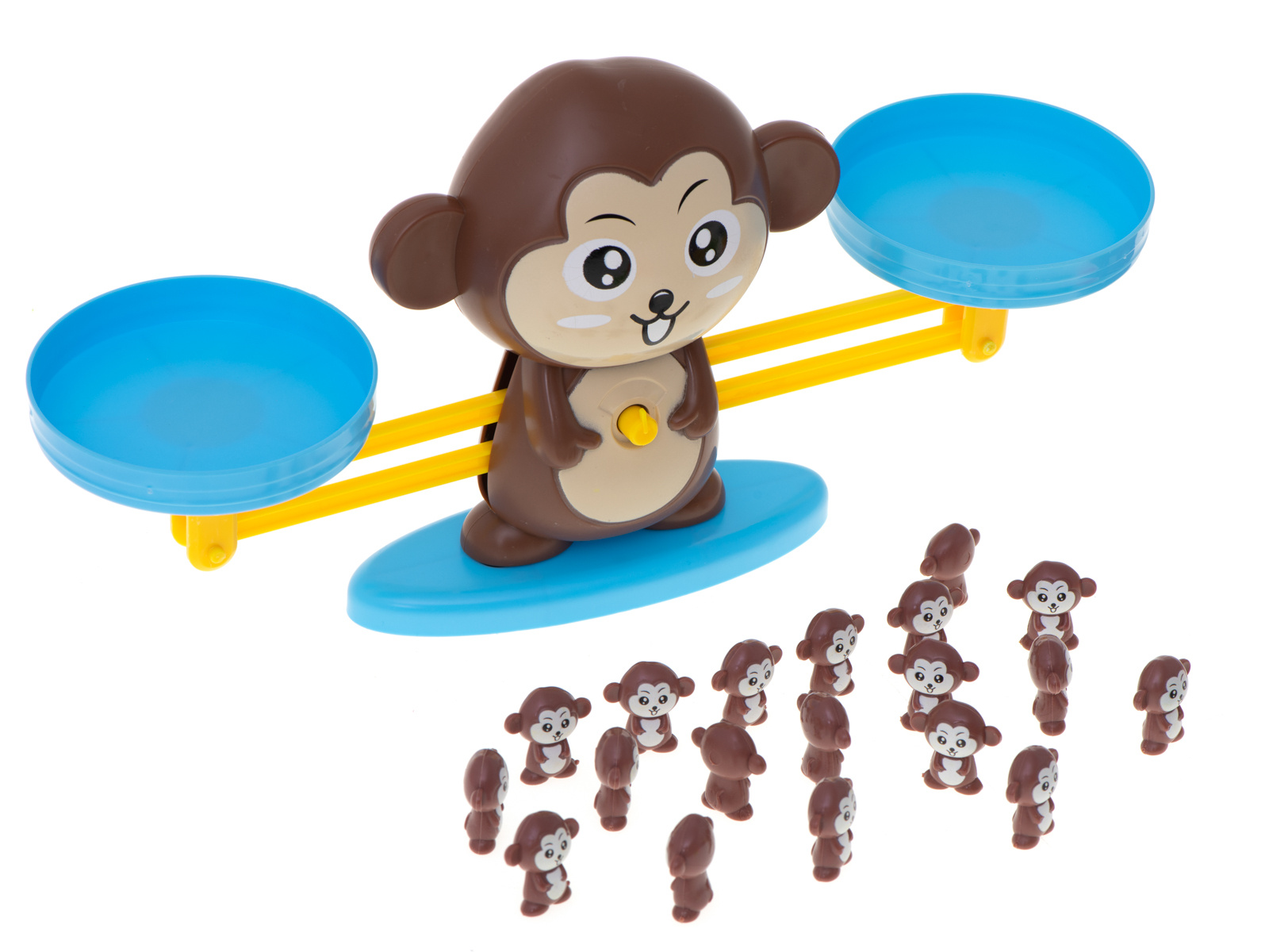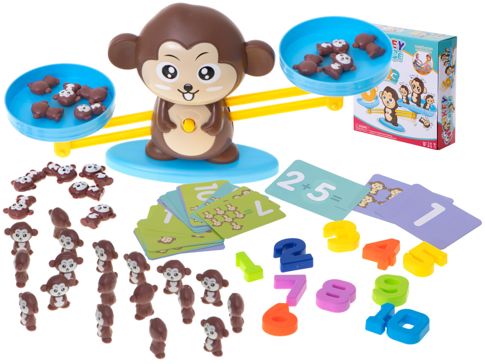Jak naučit počty zábavně a snadno? Tato opička je ideální volba! Jednoduše dáte na jednu misku váhy číslo a na druhou příslušný počet opiček.