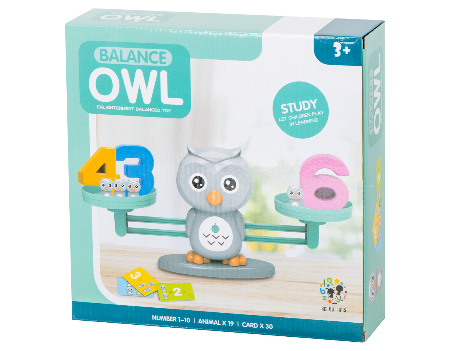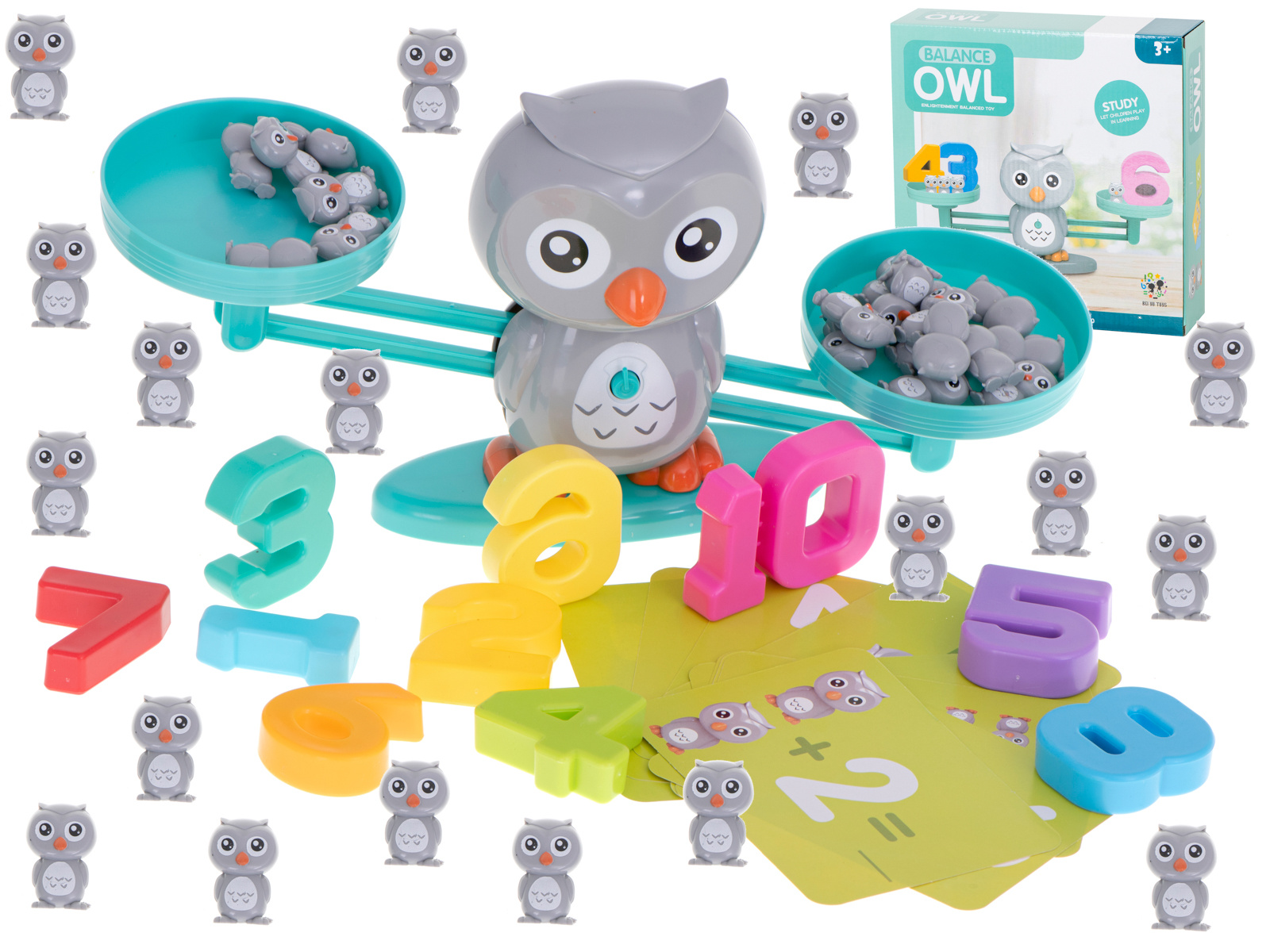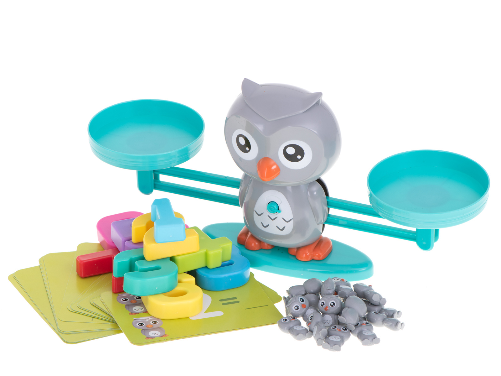 Jak naučit počty zábavně a snadno? Tato sova je ideální volba! Jednoduše dáte na jednu misku váhy číslo a na druhou příslušný počet sov.