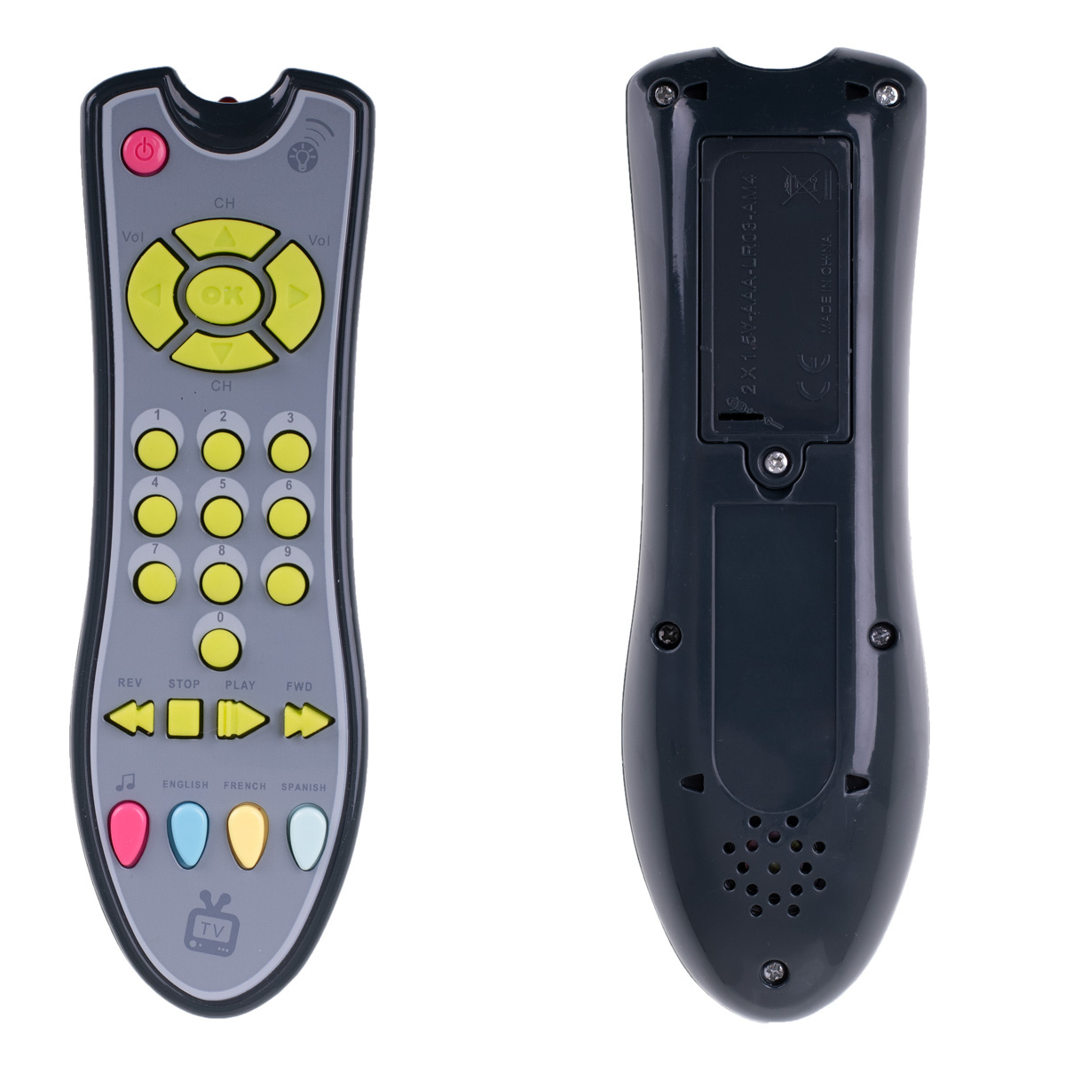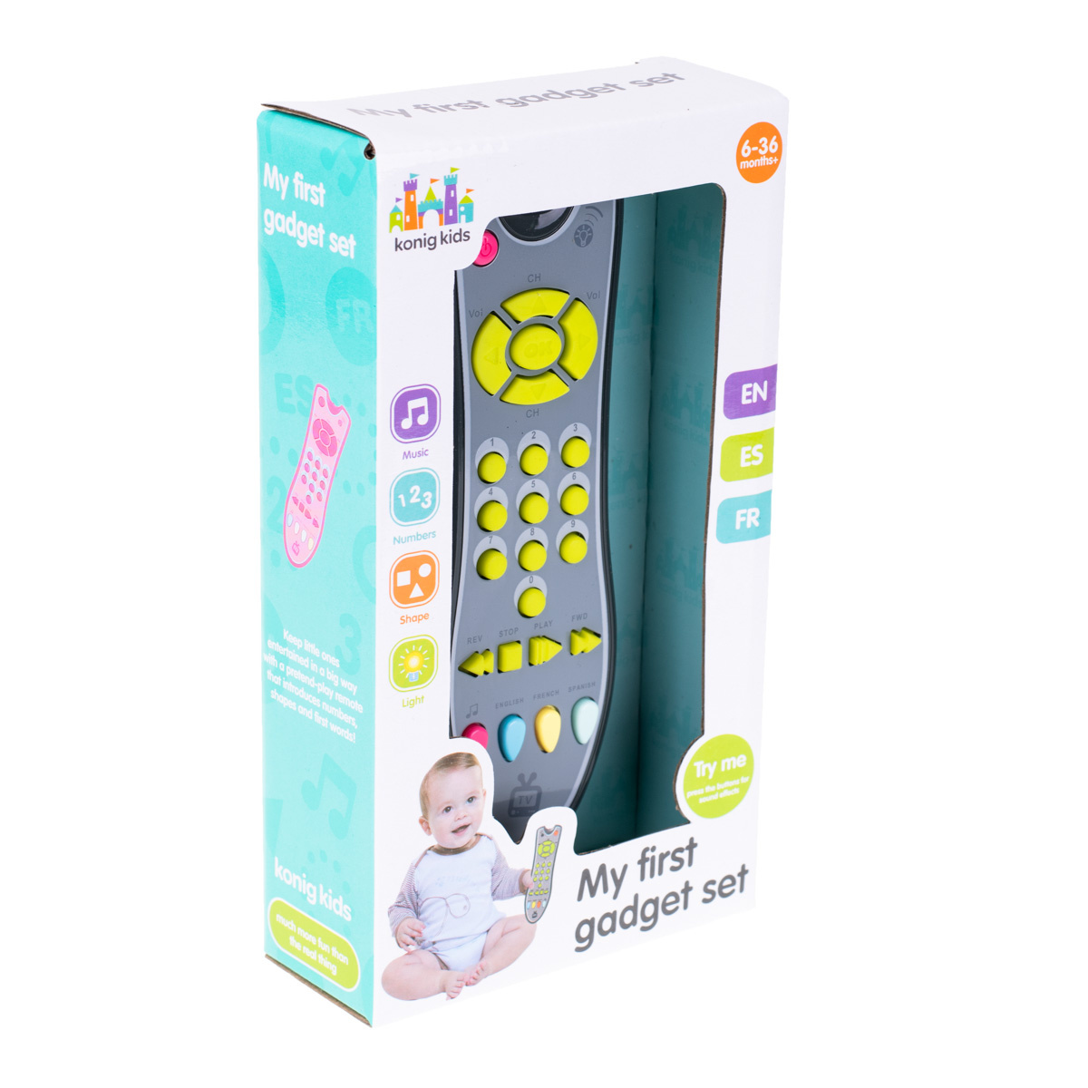 Pomocí dálkového ovládání se dítě naučí nové zvuky a začne poznávat nové jazyky: angličtinu, španělštinu a francouzštinu.
