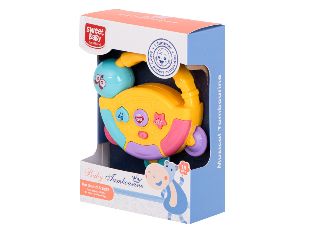 Tato hudební hračka je pestrobarevná a všechny použité barvy jsou příjemné na pohled, aby upoutaly pozornost vašeho dítěte! jakmile si vaše batole začne hrát, určitě nebude chtít tamburínu odložit!