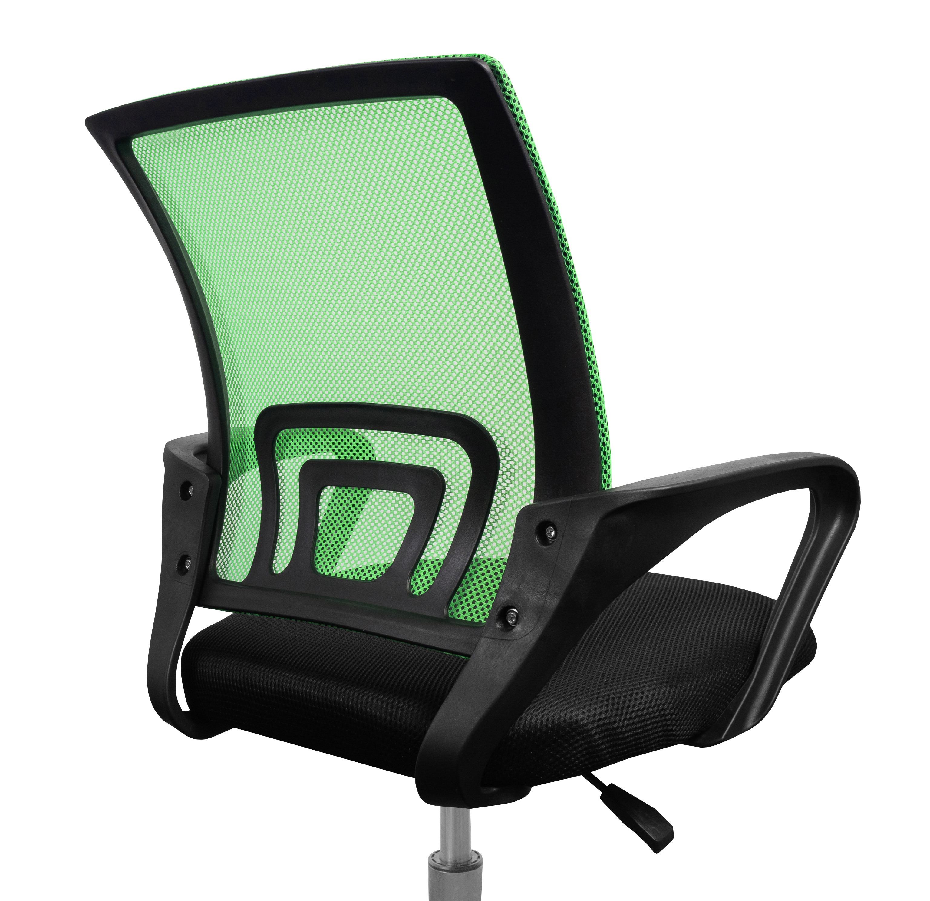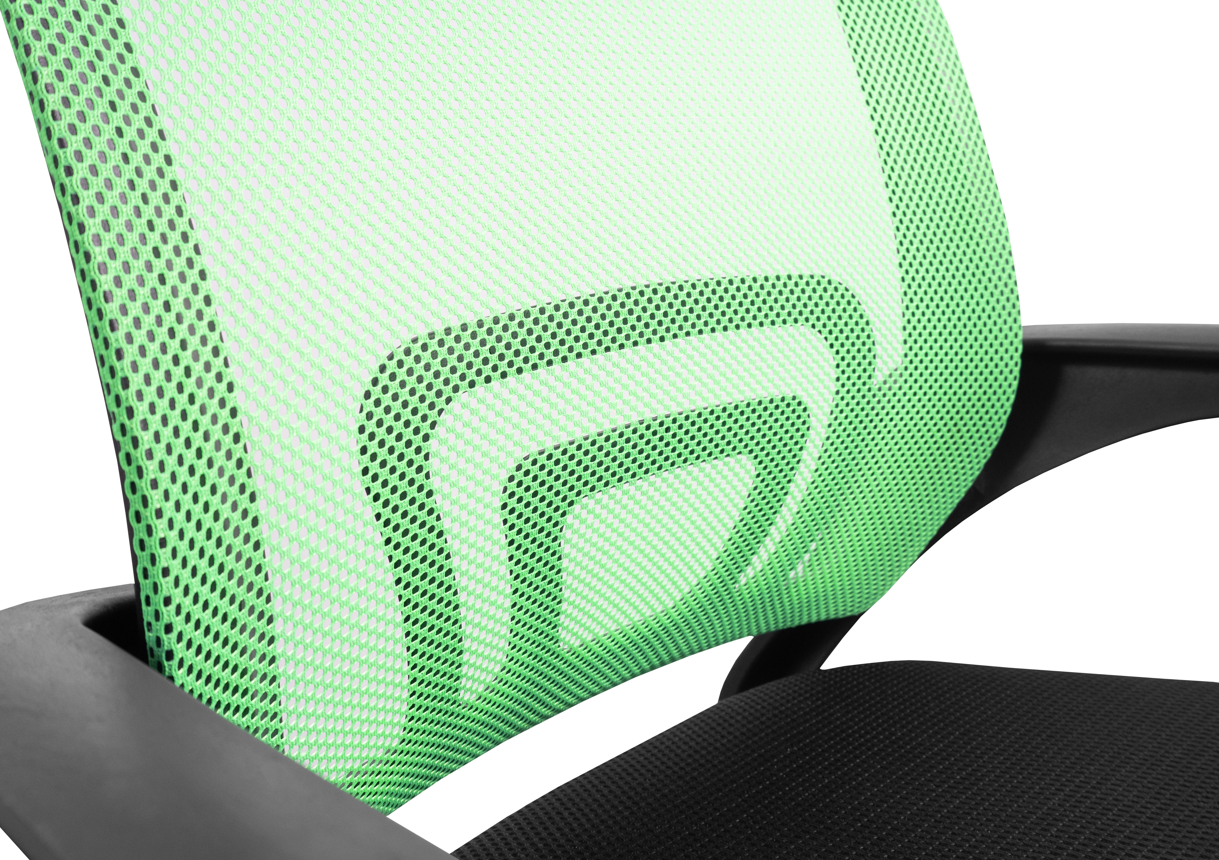 Kancelářská židle bez podhlavníku, která je vyrobená v černo - zelené barvě v kombinaci síťoviny a plastu.
