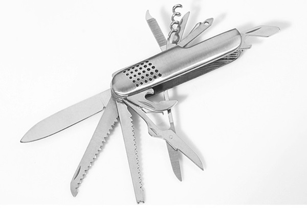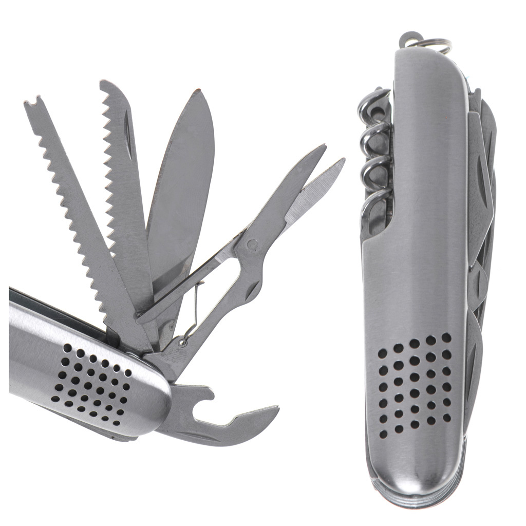 Praktický multifunkční kapesní nůž, který vám zaručí nepostradatelnou pomoc v každé situaci. Počet nožů: 12. Materiál: ocel. Rozměry složeného kapesního nože: 9 cm x 2 cm x 1,2 cm. Délka nože: 6,5 cm.