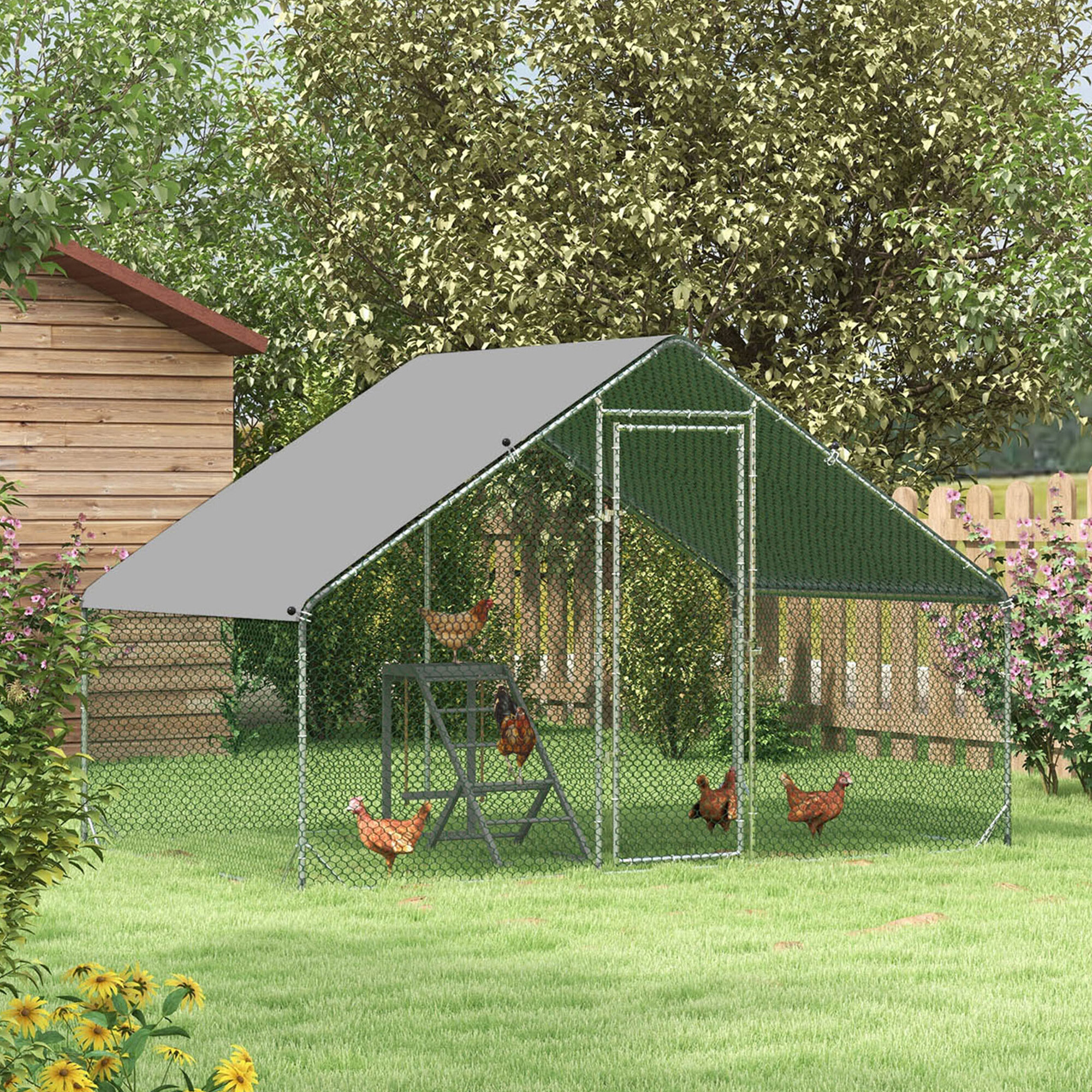 Výběh během chvilky smontujete díky modulárnímu zásuvnému systému a můžete na něj připevnit krycí plachtu, která bude drůbež chránit před přímím sluncem. Výběh má prostornou branku, kterou snadno otevřete a můžete bez problémů vstoupit do výběhu.