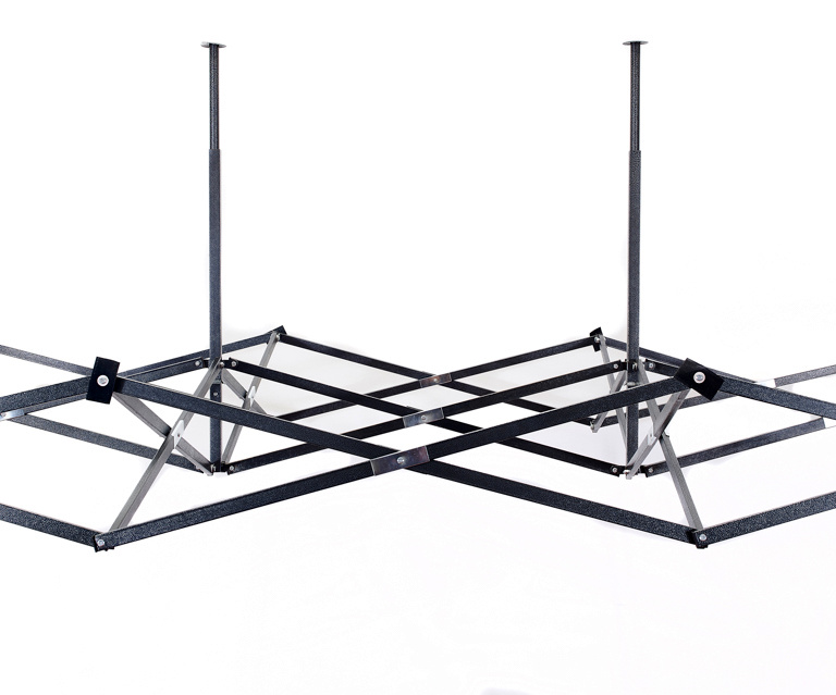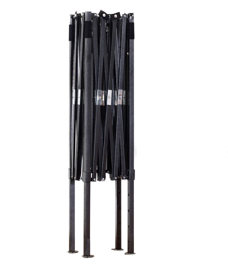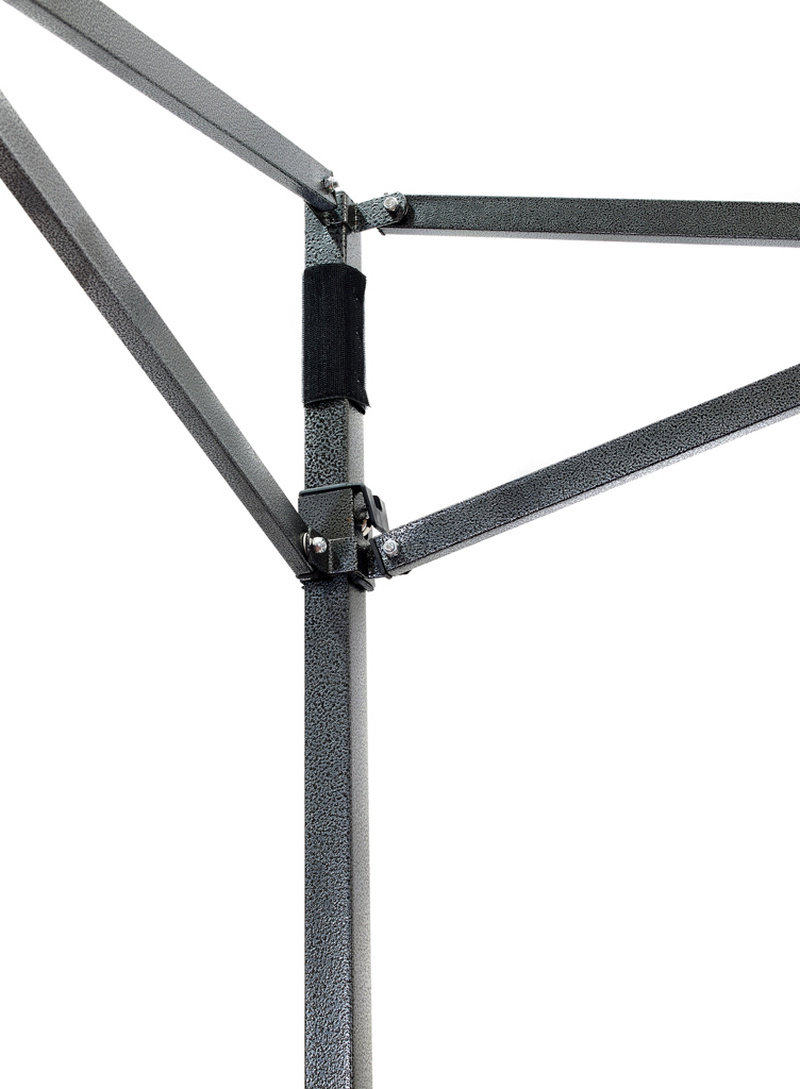Konstrukce je vyrobená z pevných kovových práškově lakovaných profilů čtvercového tvaru. Nohy konstrukce stánku jsou ve spodní části opatřeny patkami s otvory sloužícími pro ukotvení k pevnému povrchu.