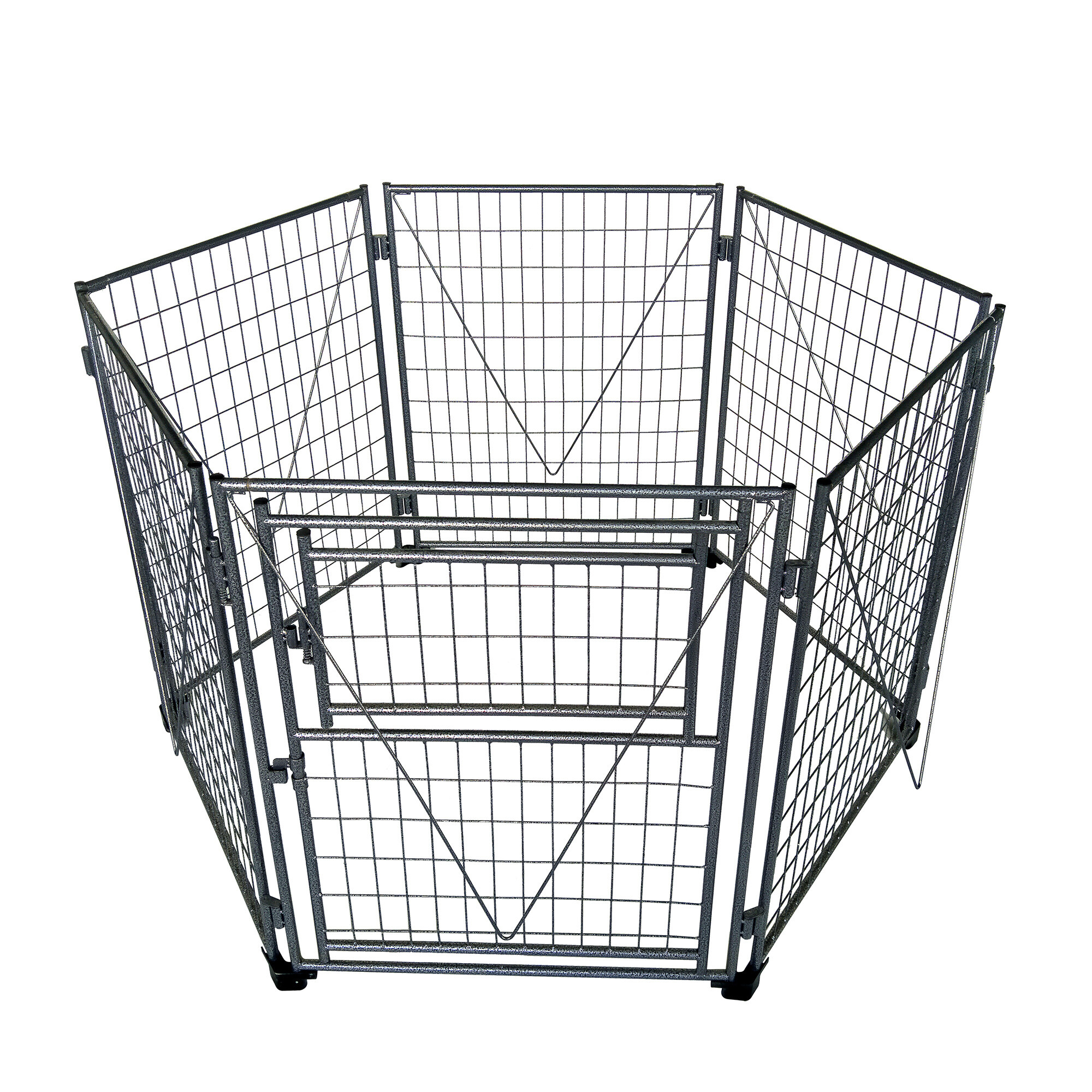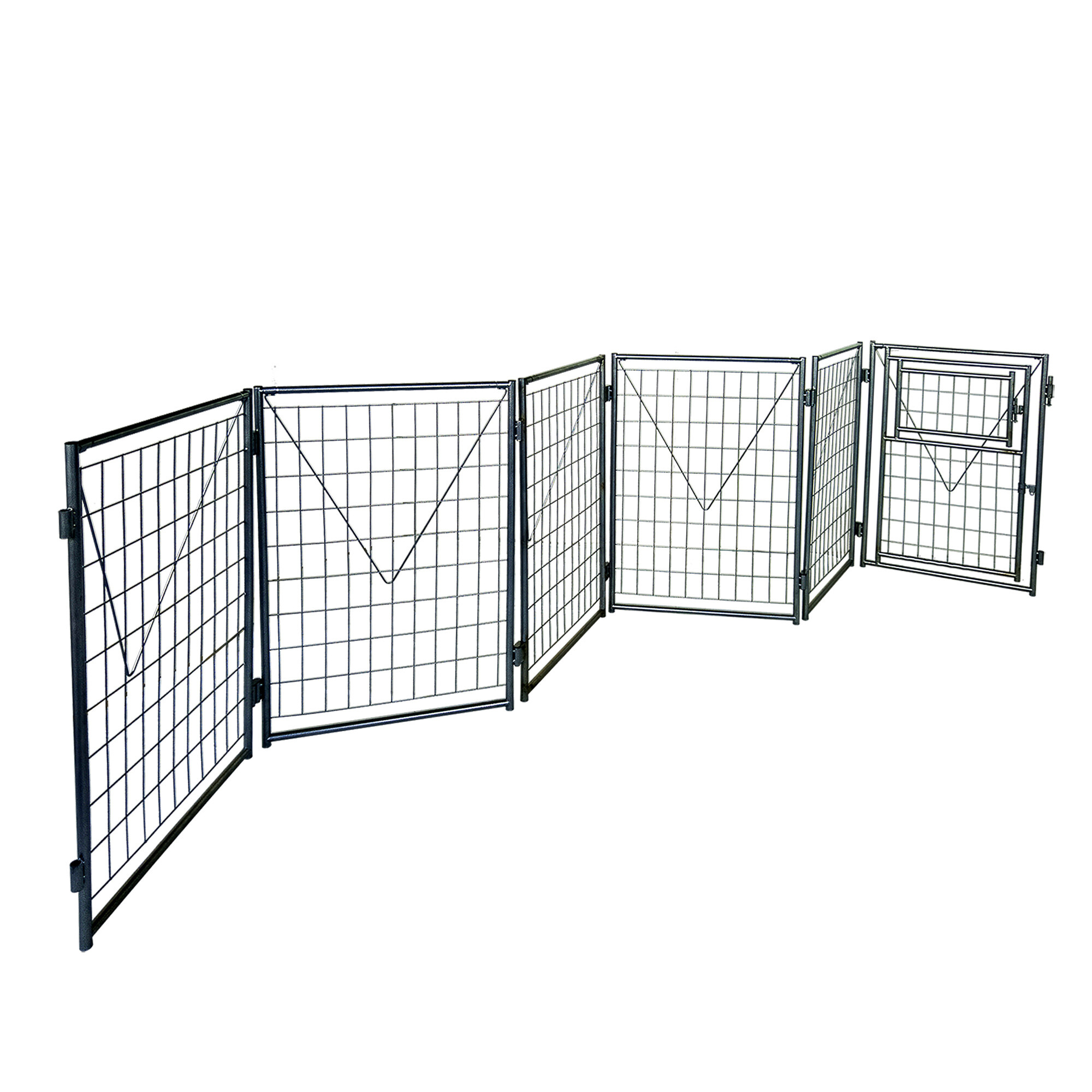 Šest jednotlivých kovových dílů lze snadno spojit pomocí spojovacích pantů. Kotec lze kombinovat s dalšími kotci značky Aga v různých variantách podle Vašich prostorových možností. Kromě toho je vybaven dvířky, což poskytuje větší flexibilitu při vstupování a vystupování.