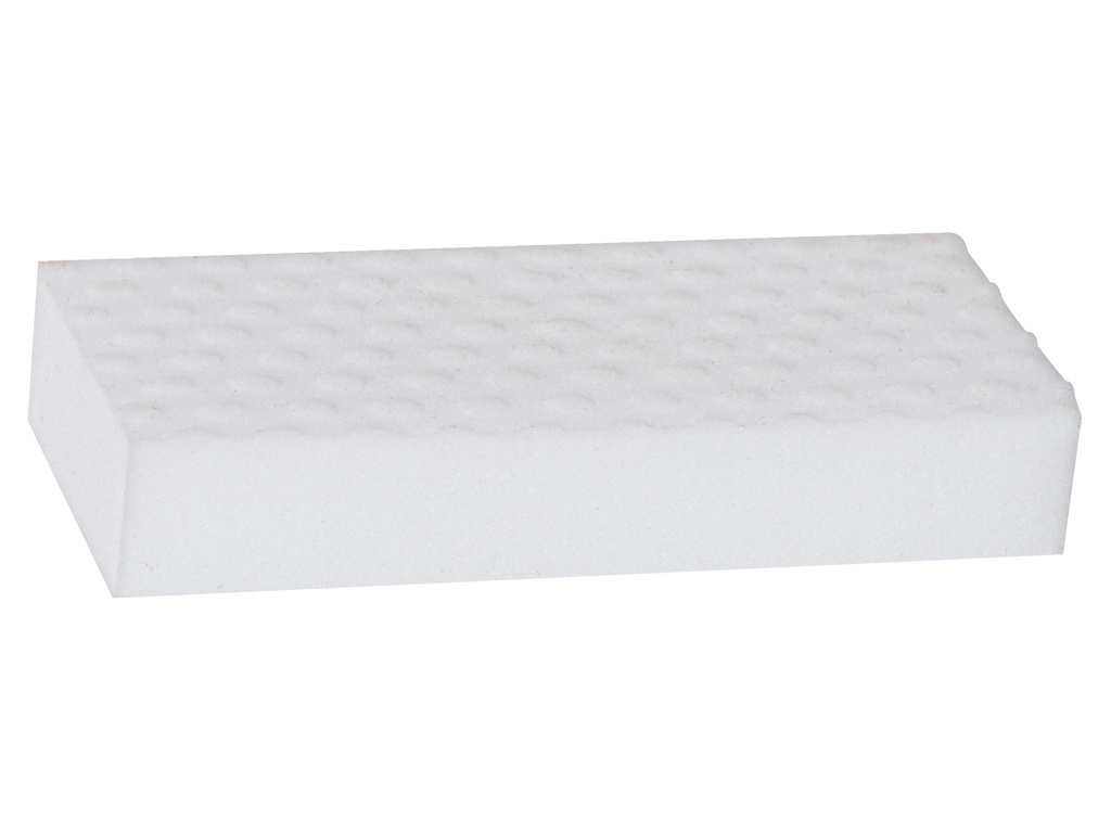 Vysoká účinnost houby je dána jejími jemnými abrazivními vlastnostmi. Při čištění se opotřebovává jako guma.