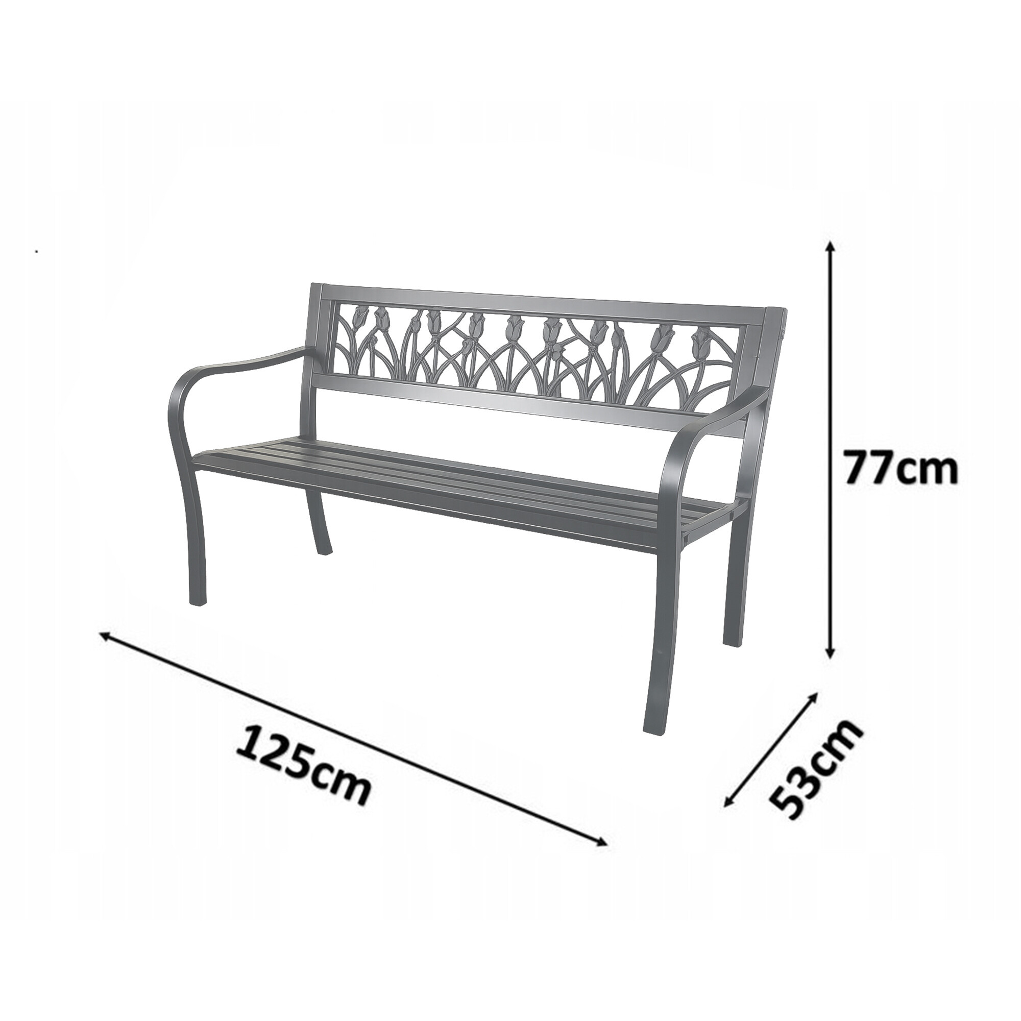 Díky svým rozměrům 125 x 53 x 77 cm nabízí zahradní lavice dostatek místa pro 2 až 3 osoby. Lavička má nosnost až 150 kg.