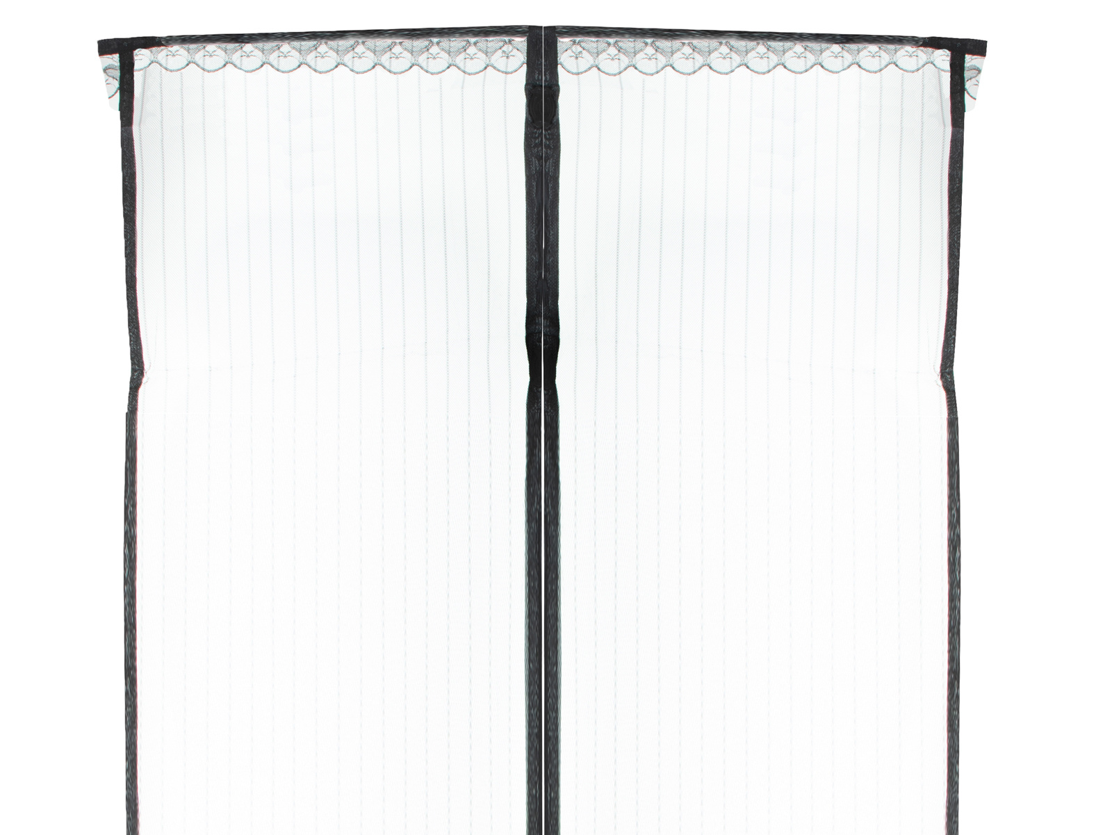 Moskytiéra se skládá ze dvou částí. Je důležité, aby části s magnety byly uprostřed - tím se zajistí, že se moskytiéra při průchodu automaticky otevře a zavře.