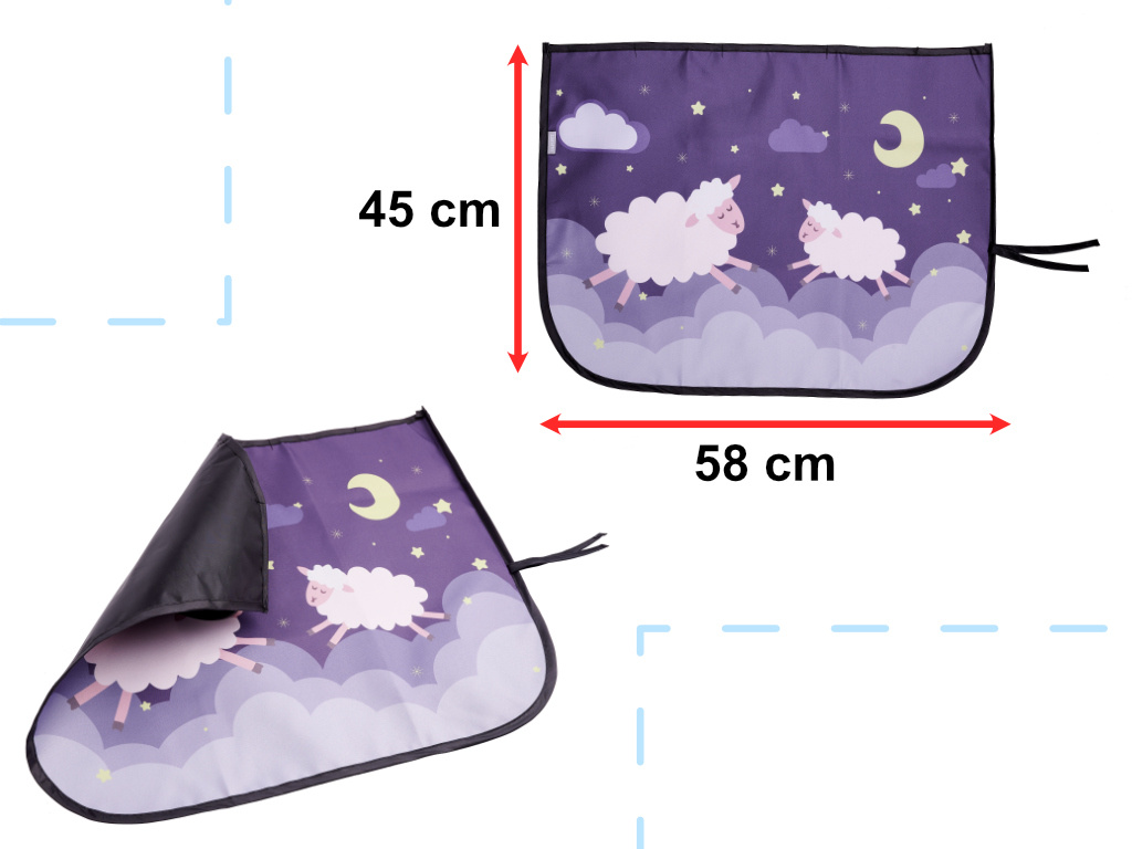Závěs je vyroben z dvouvrstvého materiálu, který zaručuje úplné zatemnění. Na jedné straně je barevný obrázek a na druhé bílý nápis na černém pozadí - "Go out and enjoy the sunshine"