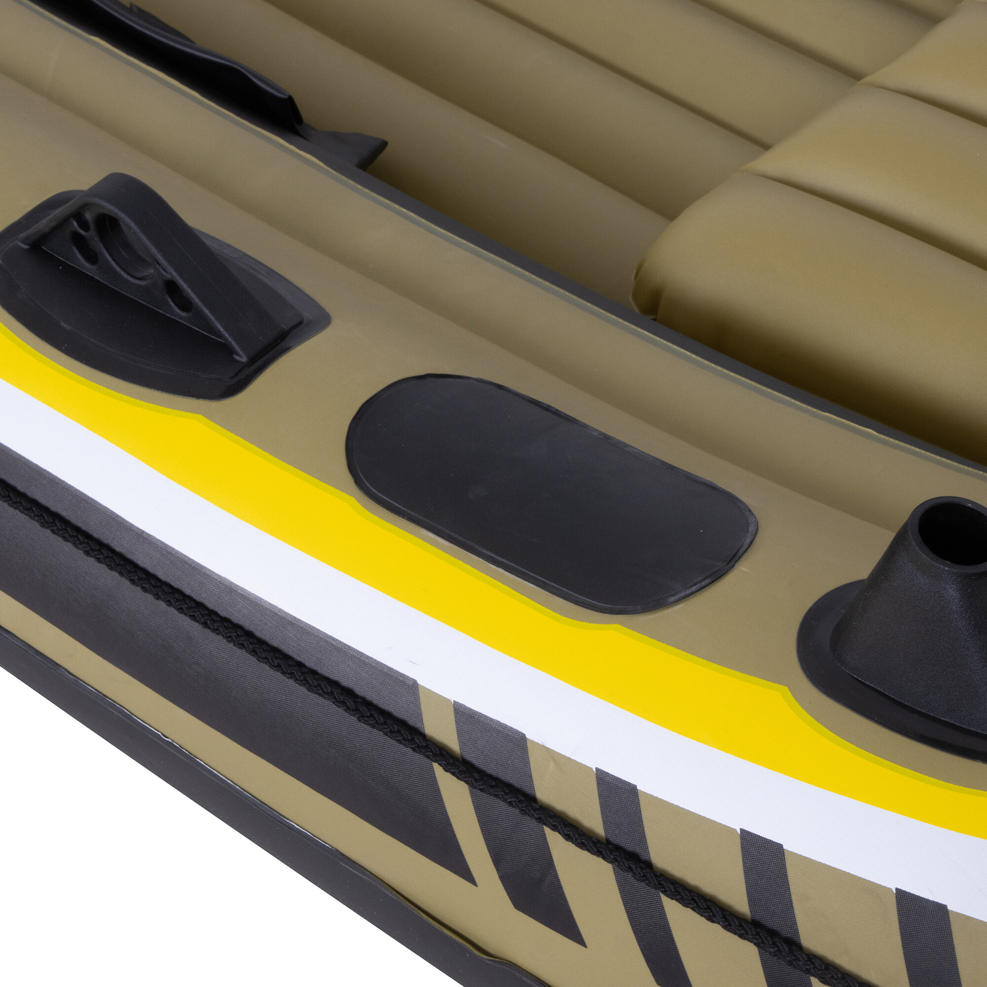 Gumové rukojeti vám umožní snadno přenášet člun z jednoho místa na druhé. Ať už ho potřebujete přenést k vodě nebo zpět do auta, tyto rukojeti vám usnadní práci a zajistí pohodlnou manipulaci.