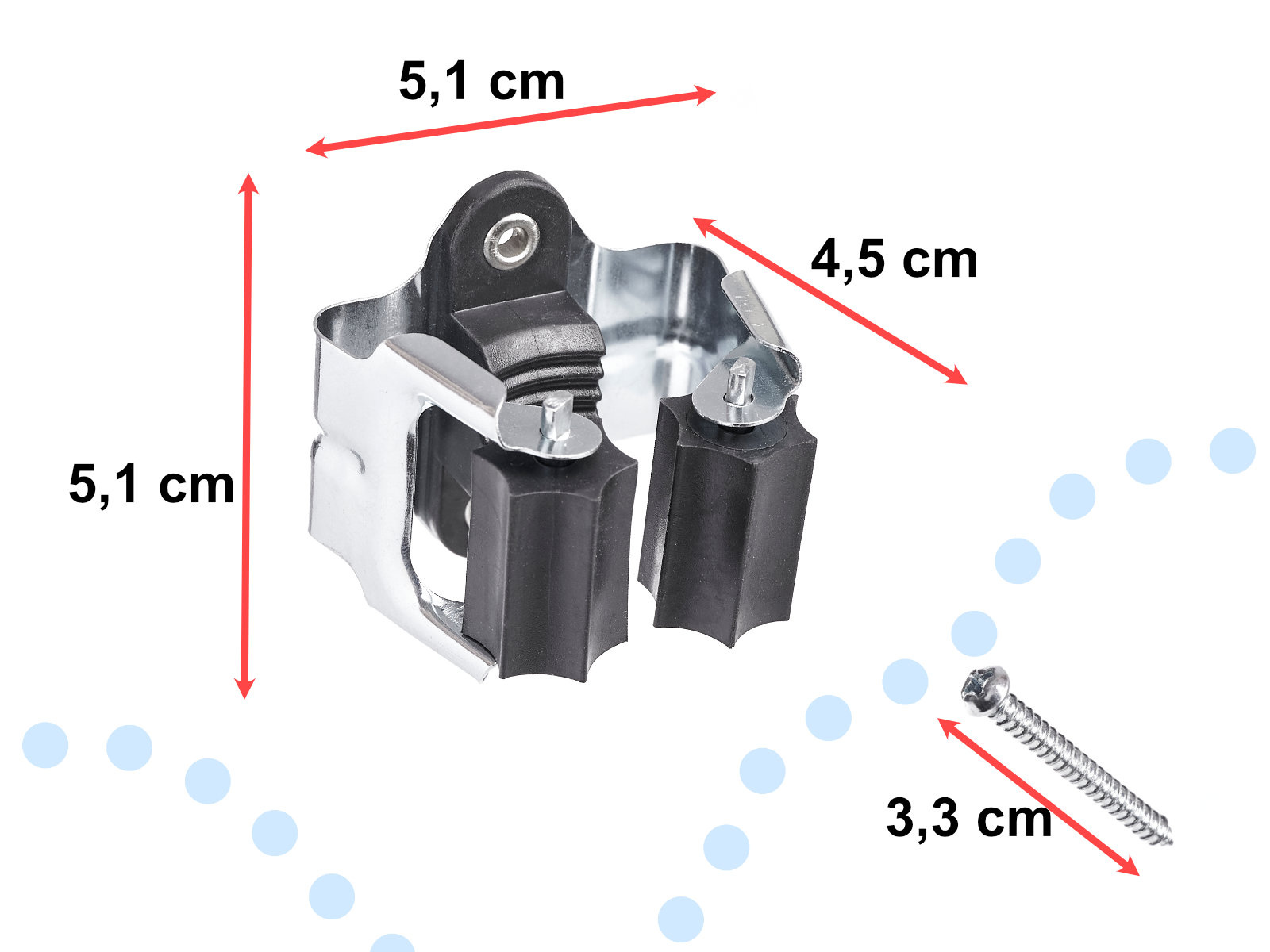 Univerzální nástěnný držák jistě najde uplatnění v každé domácnosti, dílně nebo kanceláři. Díky němu budete mít pod kontrolou neustále se převracející mopy nebo zametací kartáče. Upevnění na stěnu pomocí šroubů zaručuje dlouhou životnost.