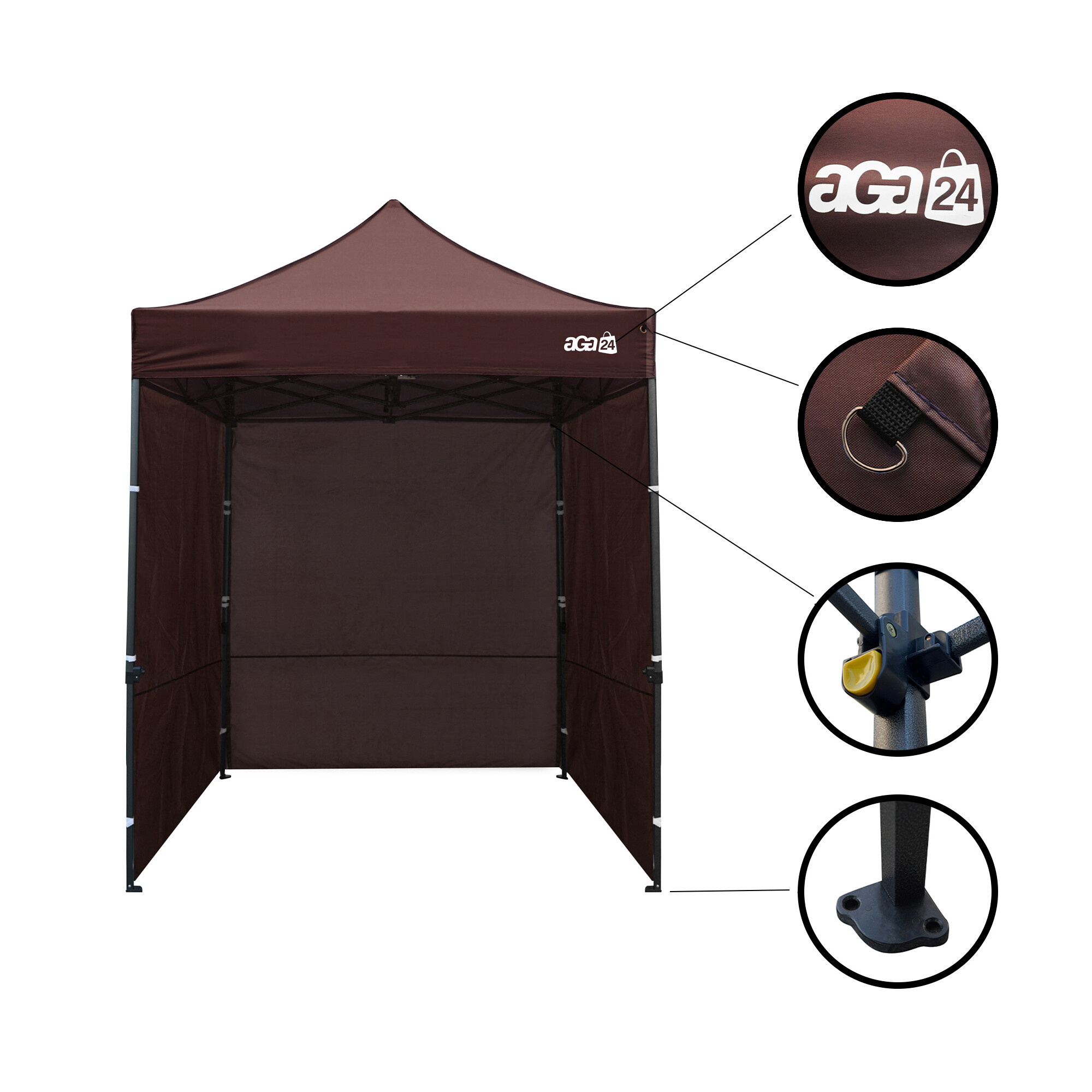Nohy stánku, jsou ve spodní části opatřeny patkou, která slouží k ukotvení stánku k pevnému povrchu.
