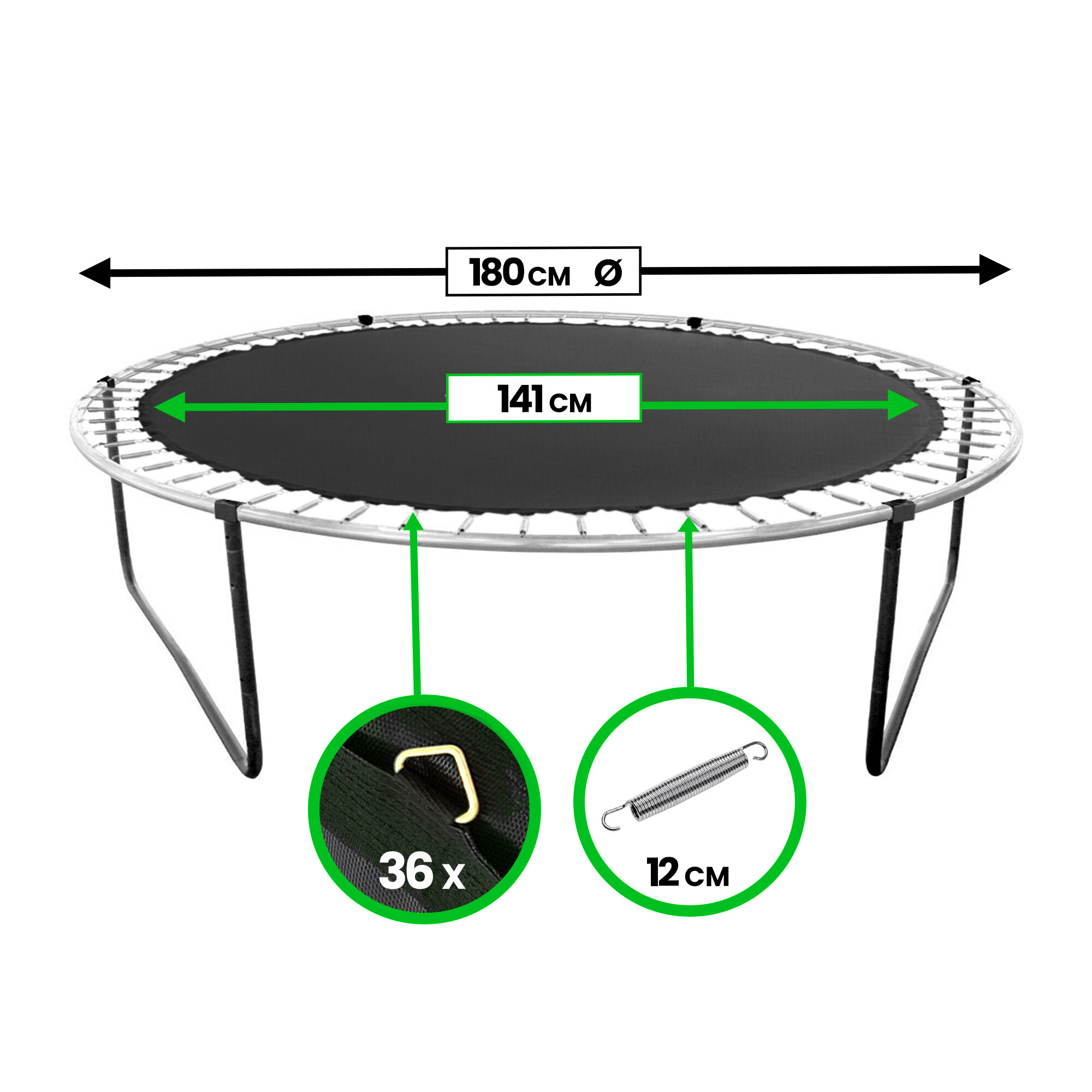 Náhradní odrazová plocha na trampolíny o velikosti 180 cm na 36 oček.