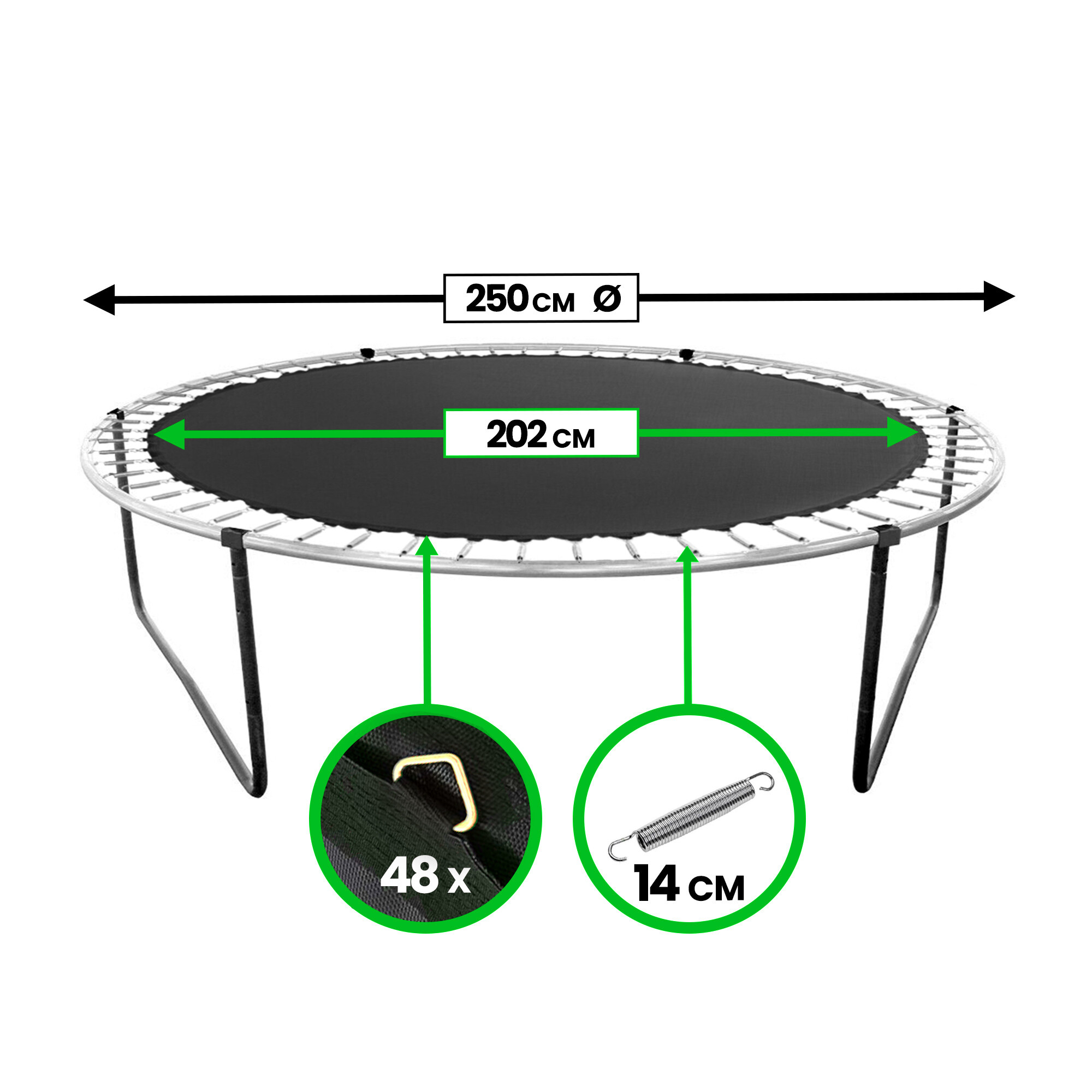 Náhradní odrazová plocha na trampolíny o velikosti 250 cm na 48 oček.