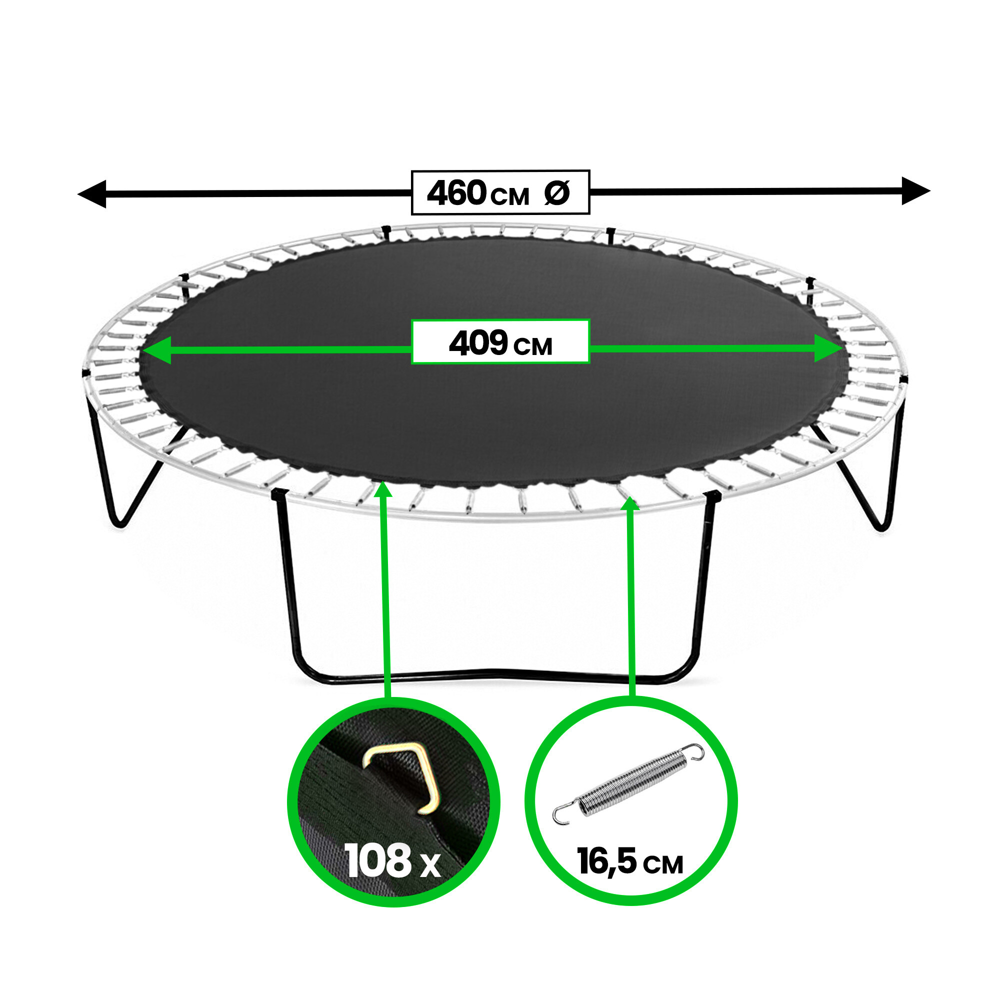 Náhradní odrazová plocha na trampolíny o velikosti 460 cm na 108 oček.