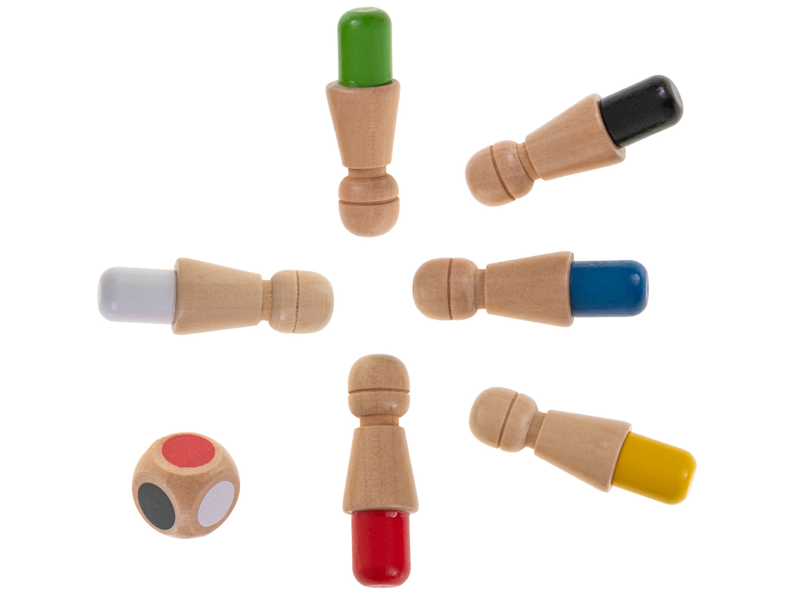 Na hrací ploše jsou 4 pěšci každé barvy. Pokud hodíte barvou, jejíž pěšci již nejsou na desce, házíte kostkou znovu, dokud házíte barvou, jejíž pěšci na desce zůstali.