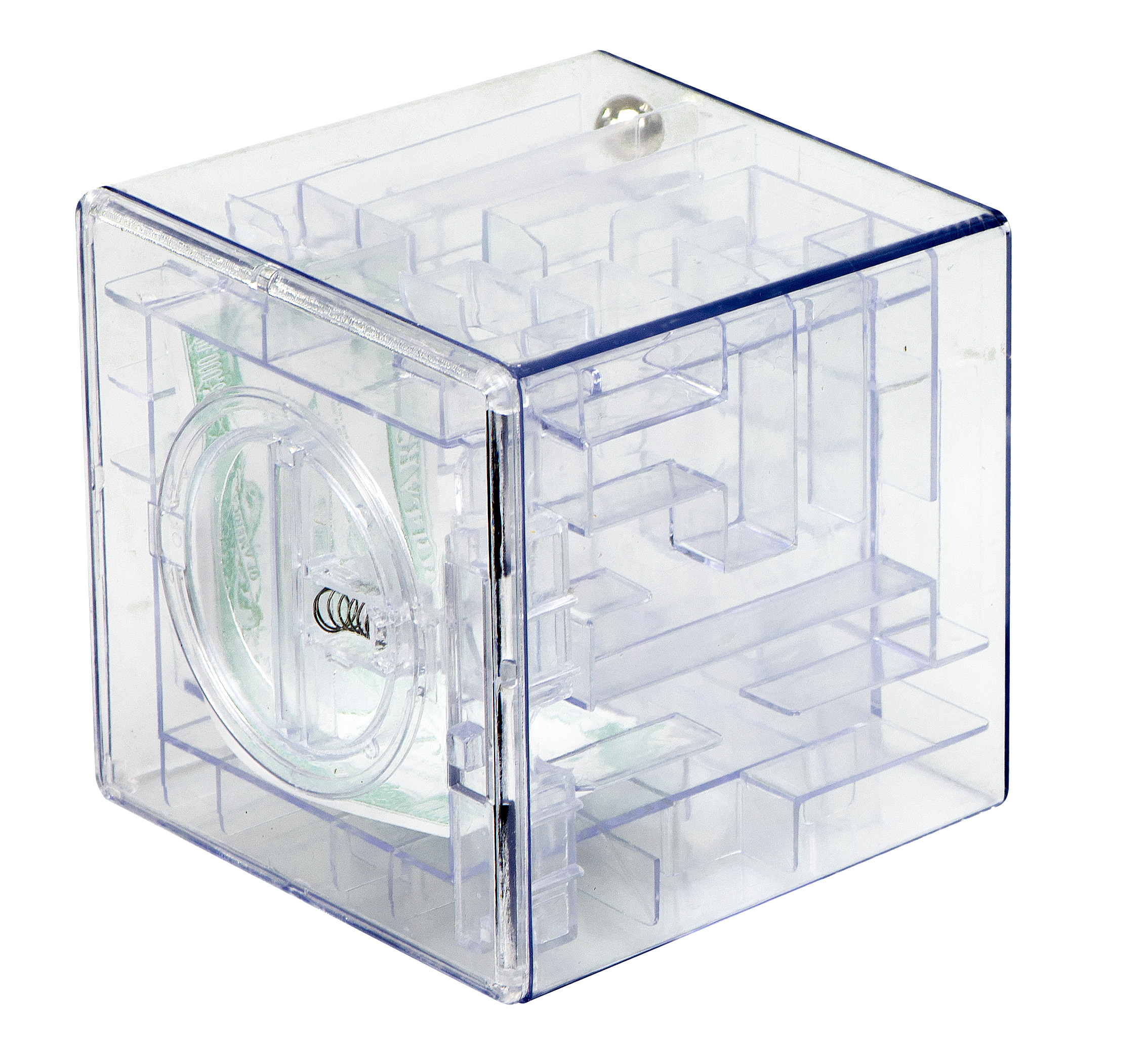 Senzační 3D pokladnice s bludištěm. Perfektní pomůcka pro ty, kteří se snaží ušetřit peníze. Abyste peníze z prasátka dostali, musíte nejprve překonat překážkovou dráhu.