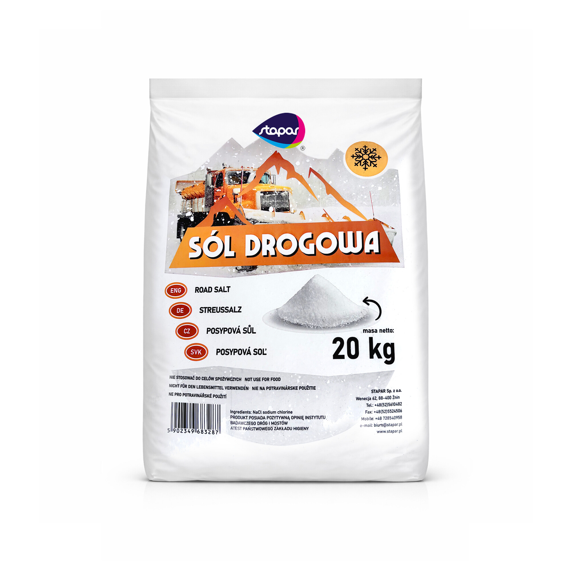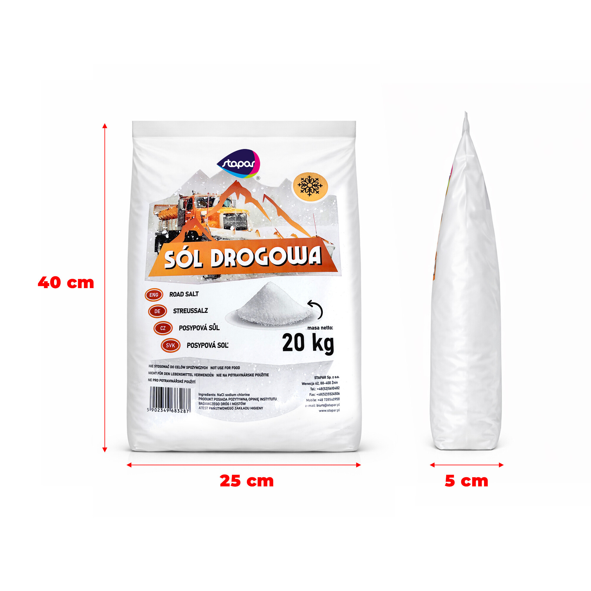 Tato zimní posypová sůl 20 kg je určena výhradně k technickému použití. Není vhodná pro potravinářské ani krmné účely.