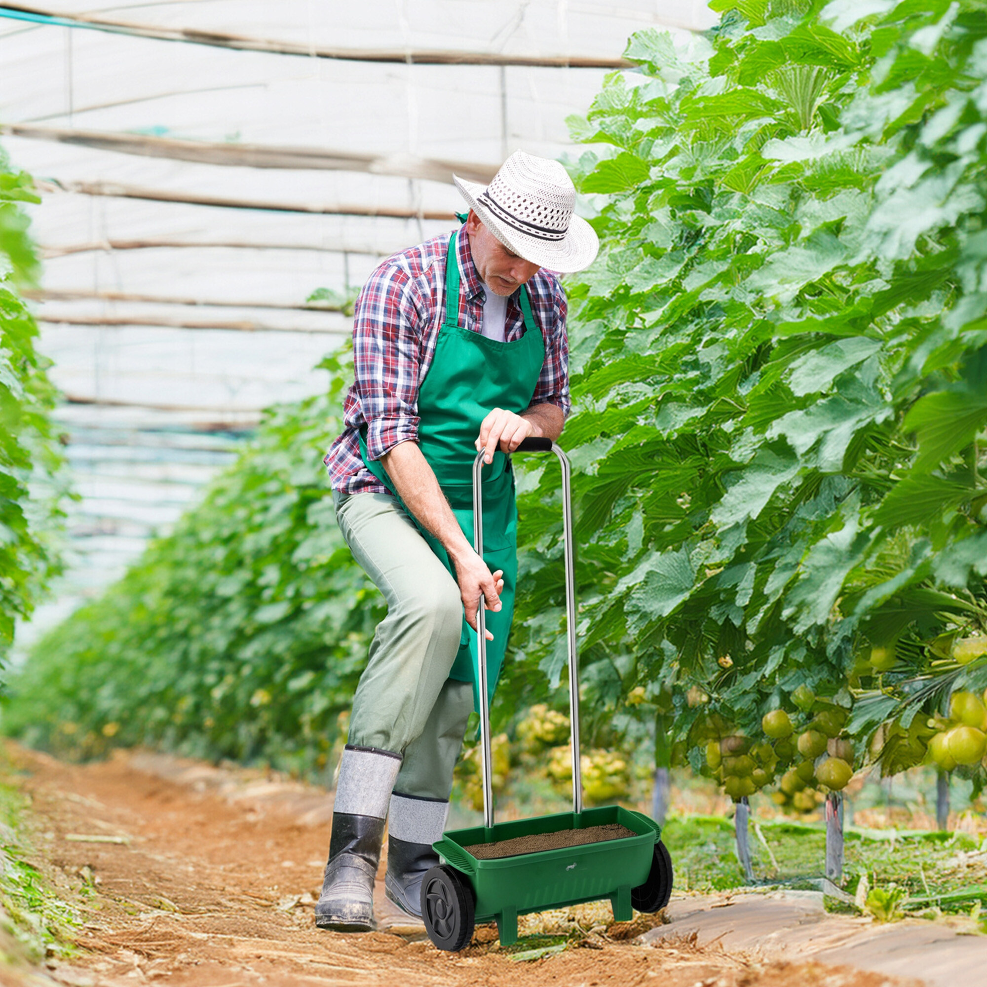 Posypový vozík je praktický pomocník pro rovnoměrné rozmetání semen, hnojiv i dalších sypkých materiálů. Díky lehké, ale zároveň stabilní konstrukci se s ním snadno pracuje na různých typech povrchu – jak na zahradě, tak na větších pozemcích.