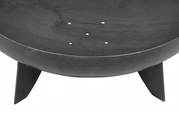 Kulaté ohniště o průměru 100 cm a hloubce mísy 21 cm je vyrobeno z masivní oceli o tloušťce cca 2,5 mm. Pro zaručení maximální stability je vybaveno třemi masivními podstavci ze stejného materiálu.