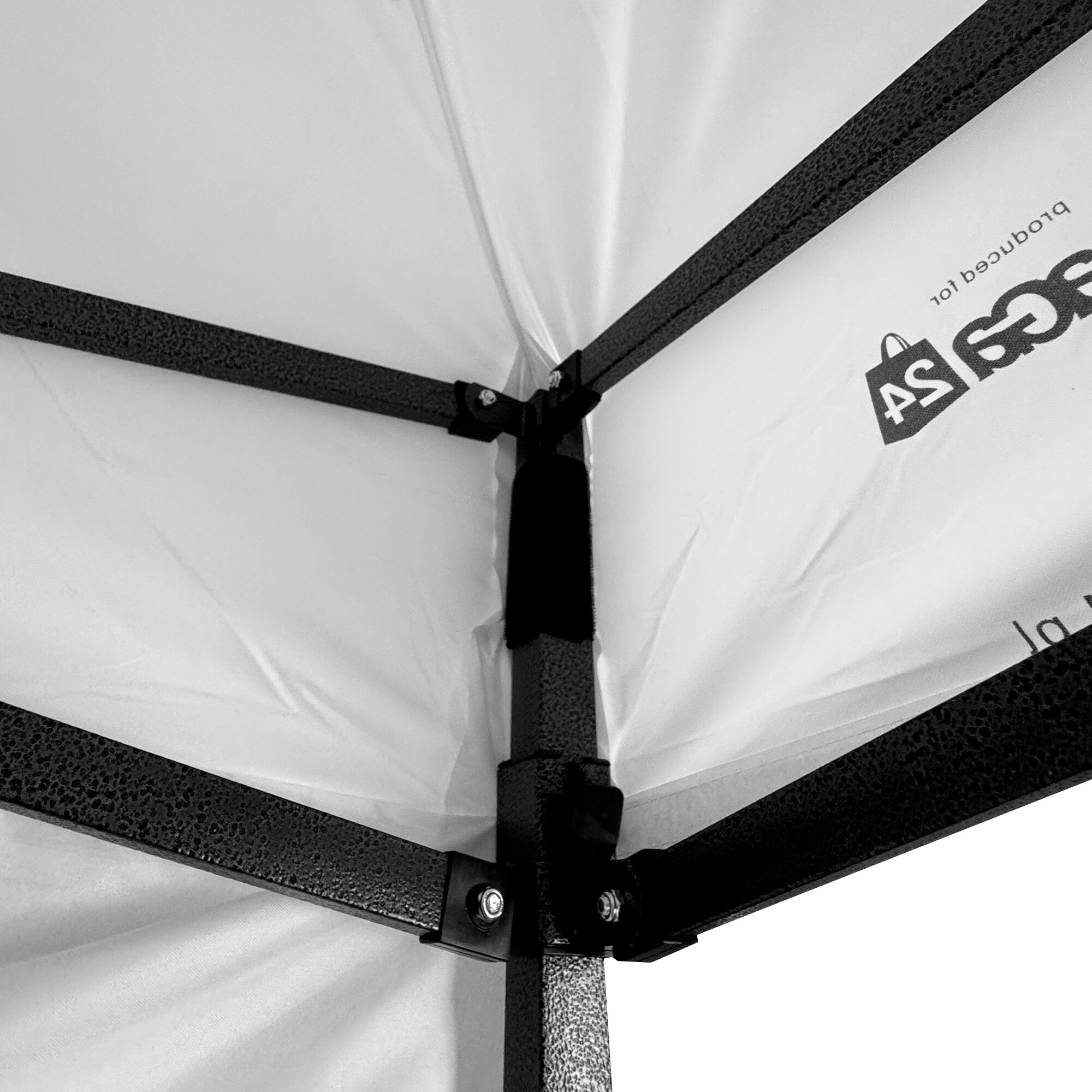 Konstrukce je vyrobena z práškově lakované oceli se šroubovanými spoji, které dodávají stánku stabilitu a pevnost i při častém používání. Patky na nohách umožňují bezpečné ukotvení k povrchu. Součástí provedení je také středová noha, která rovnoměrně rozkládá zatížení konstrukce, zvyšuje stabilitu a snižuje průhyb střechy u velkého rozměru 3×6 m.