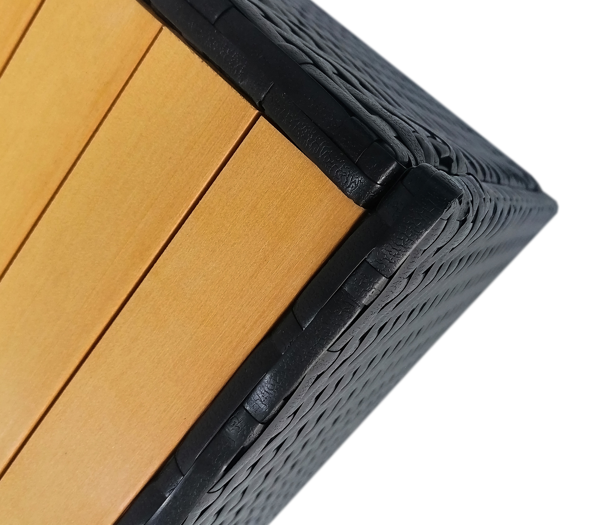 Prostorově úsporná sestava Pattio je stylově čistá a díky materiálu - umělému ratanu téměř bezúdržbová.