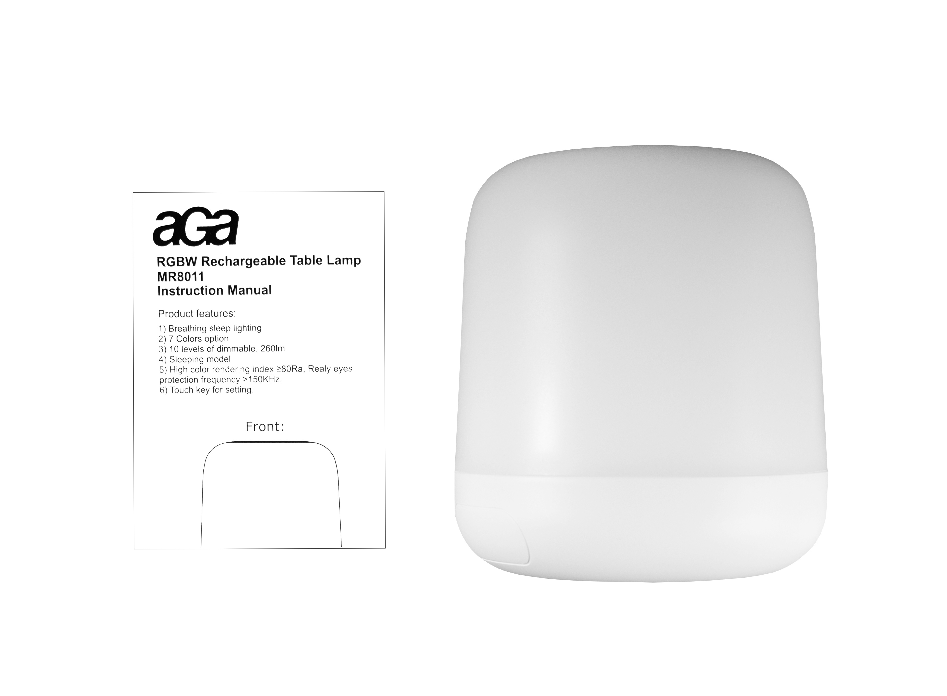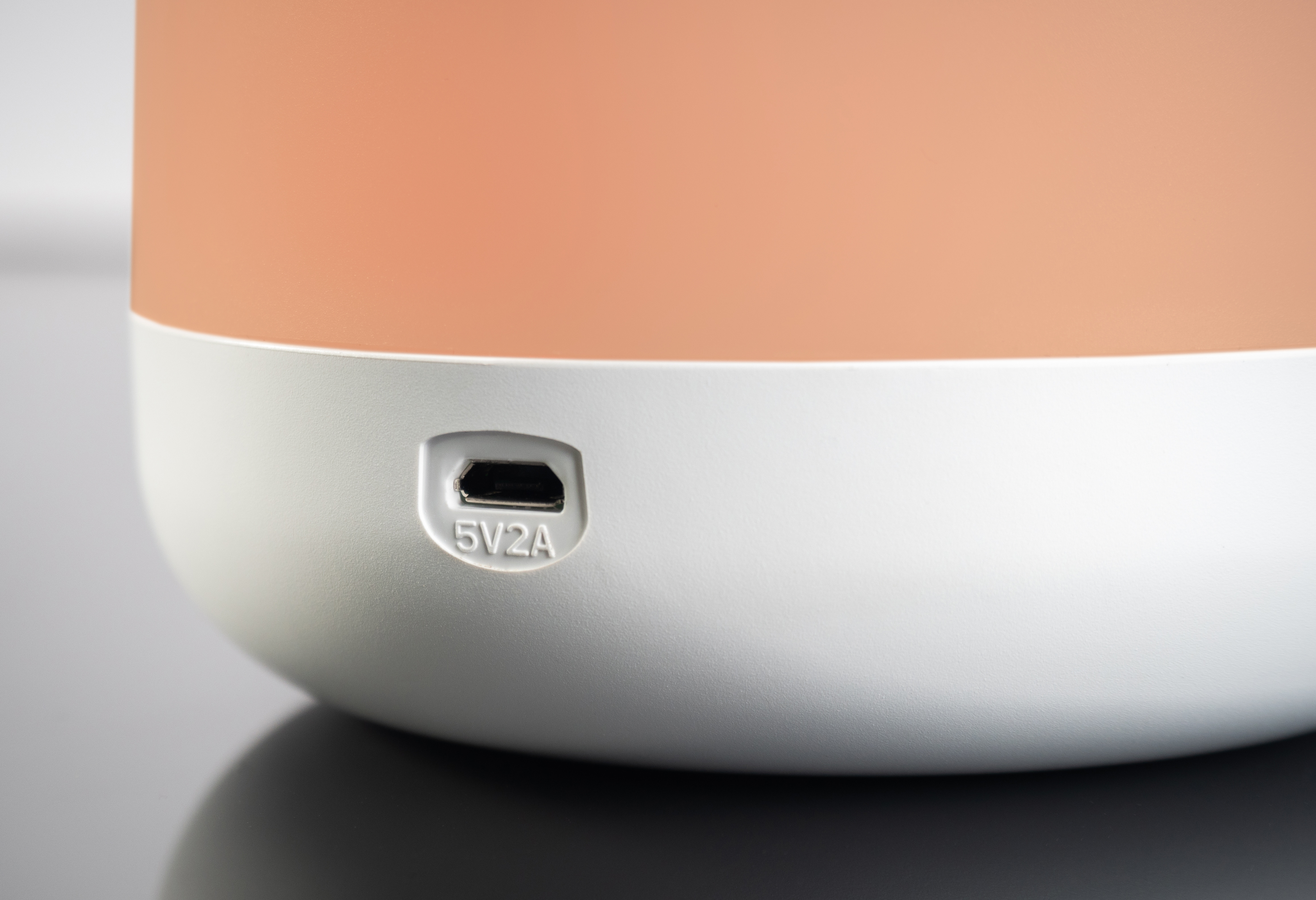Lampa vyzařuje různé druhy barev. Barevné změny se dají nastavit dotykem. Na přední části lampy se nachází úchyt pro snadné přenášení.