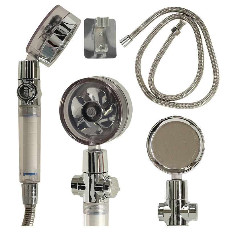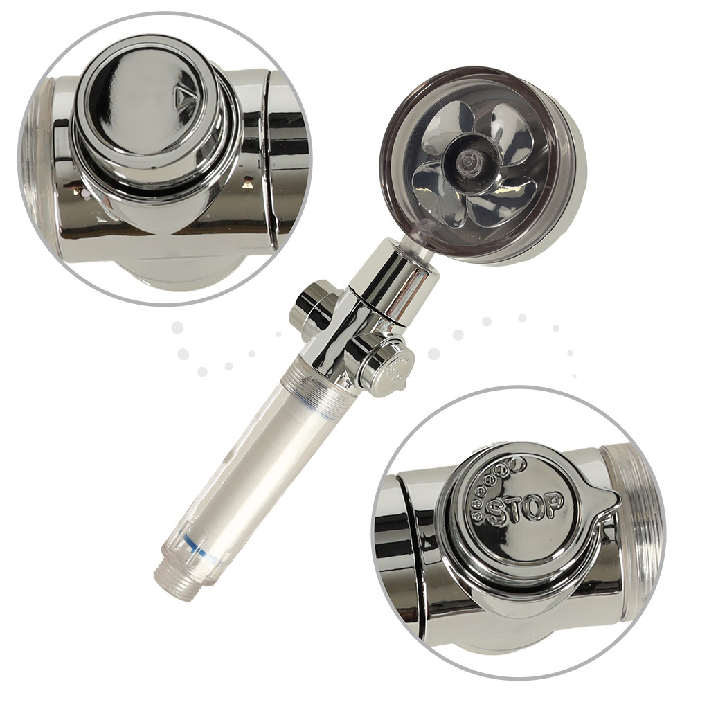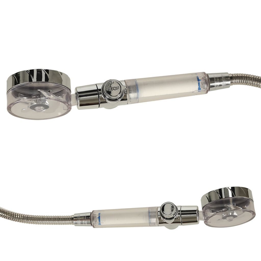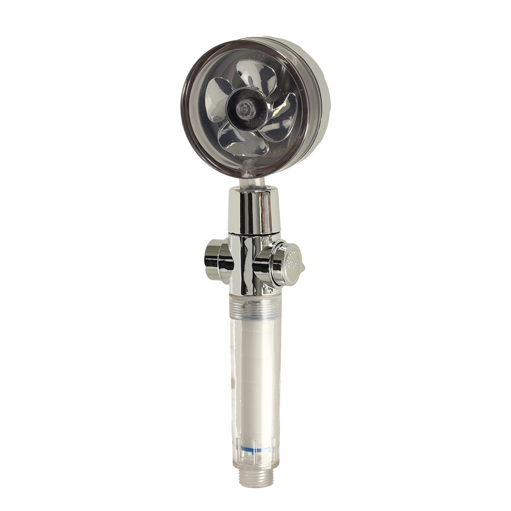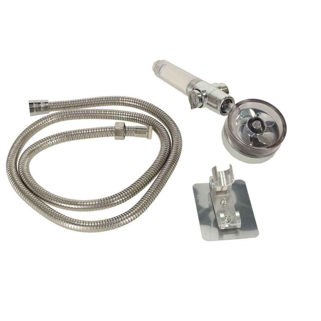 Sprchová hlavice s turbínou ve stříbrné barvě. Otočná hlava umožňuje přizpůsobit výrobek individuálním potřebám. Filtr a nástavec pro zlepšení kvality vody jsou součástí dodávky. Materiál: ABS. Dlouhá. sluchátka: 26 cm. Ať už máte doma vanu nebo sprchu, správná sprchová hlavice je jistě jedním z těch výrobků, které jsou naprosto nezbytné. A toto sprchové sluchátko má spoustu užitečných funkcí!