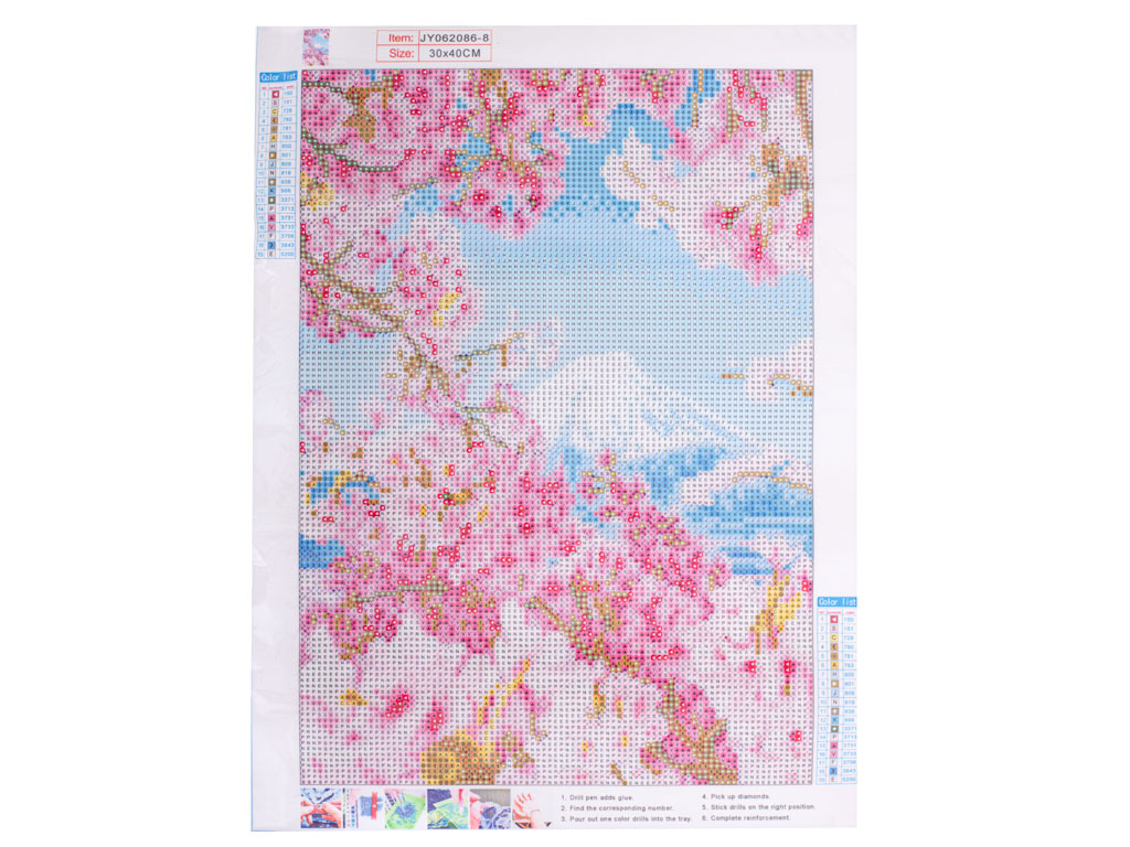 Celé plátno je potaženo vrstvou samolepicího lepidla, které udrží diamanty na místě. Odlepte plátěnou fólii z dílu, na který budete umisťovat korálky. Postupně odlepujte fólii z částí plátna, abyste zabránili znečištění nebo vyschnutí lepidla.