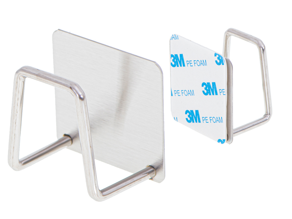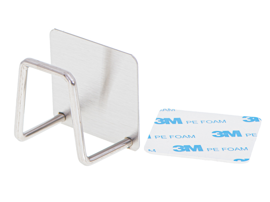 Praktický držák na kuchyňské houbičky. Nepostradatelná pomůcka v každé kuchyni. Vyrobeno z vysoce kvalitní nerezové oceli, která zaručuje dlouhou životnost. Nemusíte vrtat díry do stěn. Závěs se upevňuje pomocí silné oboustranné pásky (je součástí sady)