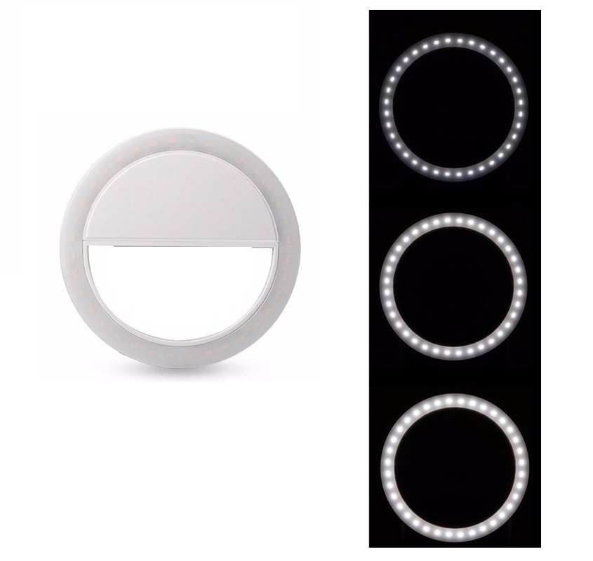 Selfie lampa s klipem. Dobře poslouží při focení nebo natáčení chytrým telefonem. Moderní design lampy ve tvaru prstence umožňuje rovnoměrné osvětlení obličeje nebo jiného předmětu. jej snadno připevnit na jakýkoliv telefon. Slouží také jako přenosná a lehká svítilna, kterou lze namontovat na mnoho míst .Má 36 Led diod pro zlepšení osvětlení fotografie. Lze nastavit ze tří úrovní jasu.