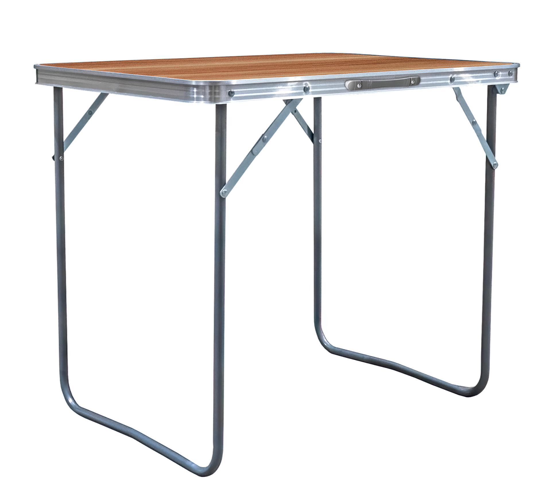 Kempingový stolek se dá složit do podoby malého kufříku. Součástí je i ucho, za které se dá složený stolek snadno přenášet.