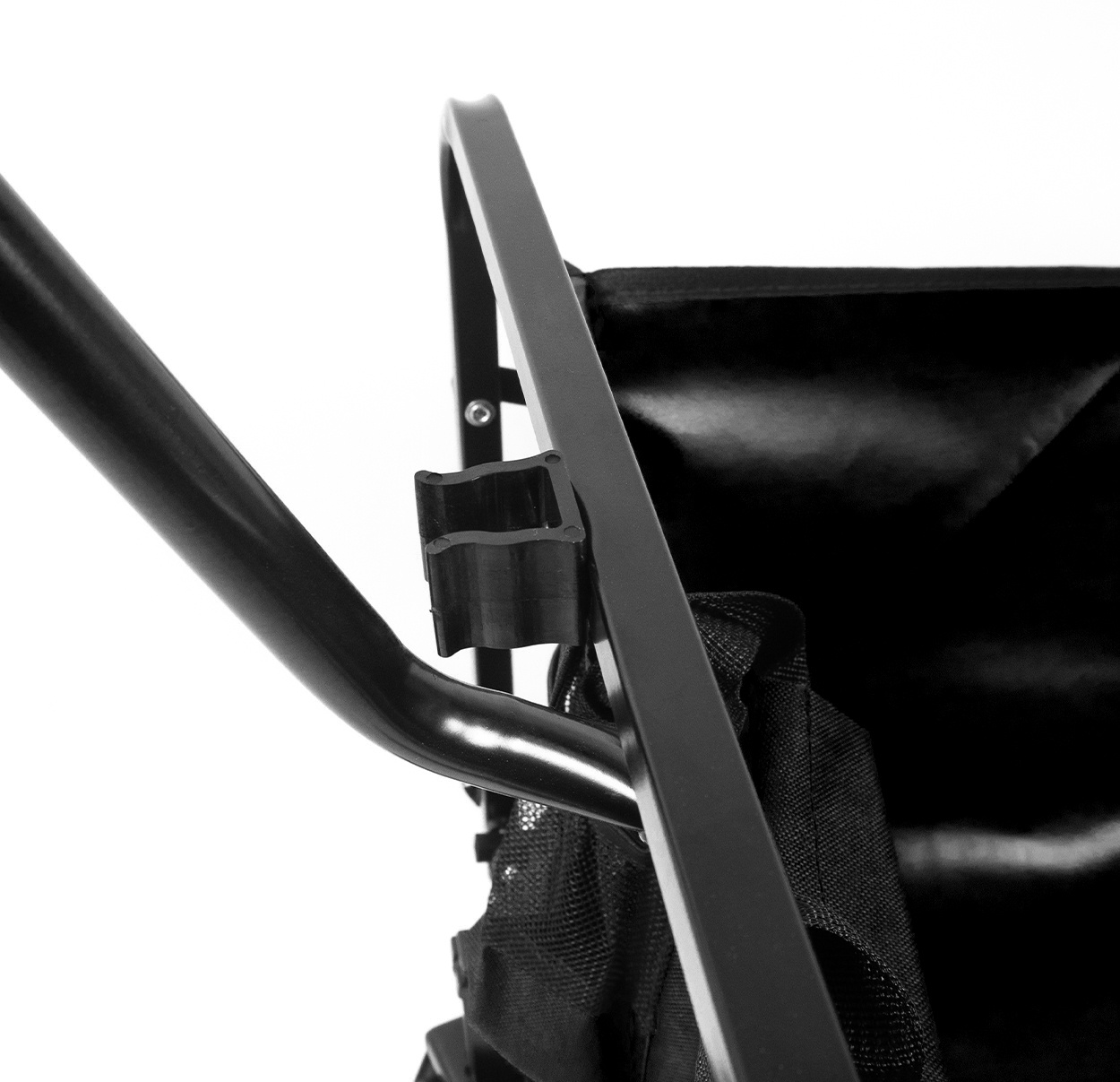 Díky velkému nákladovému prostoru vejde do vozíku vše potřebné a převezete jej na odolných plastových kolech.