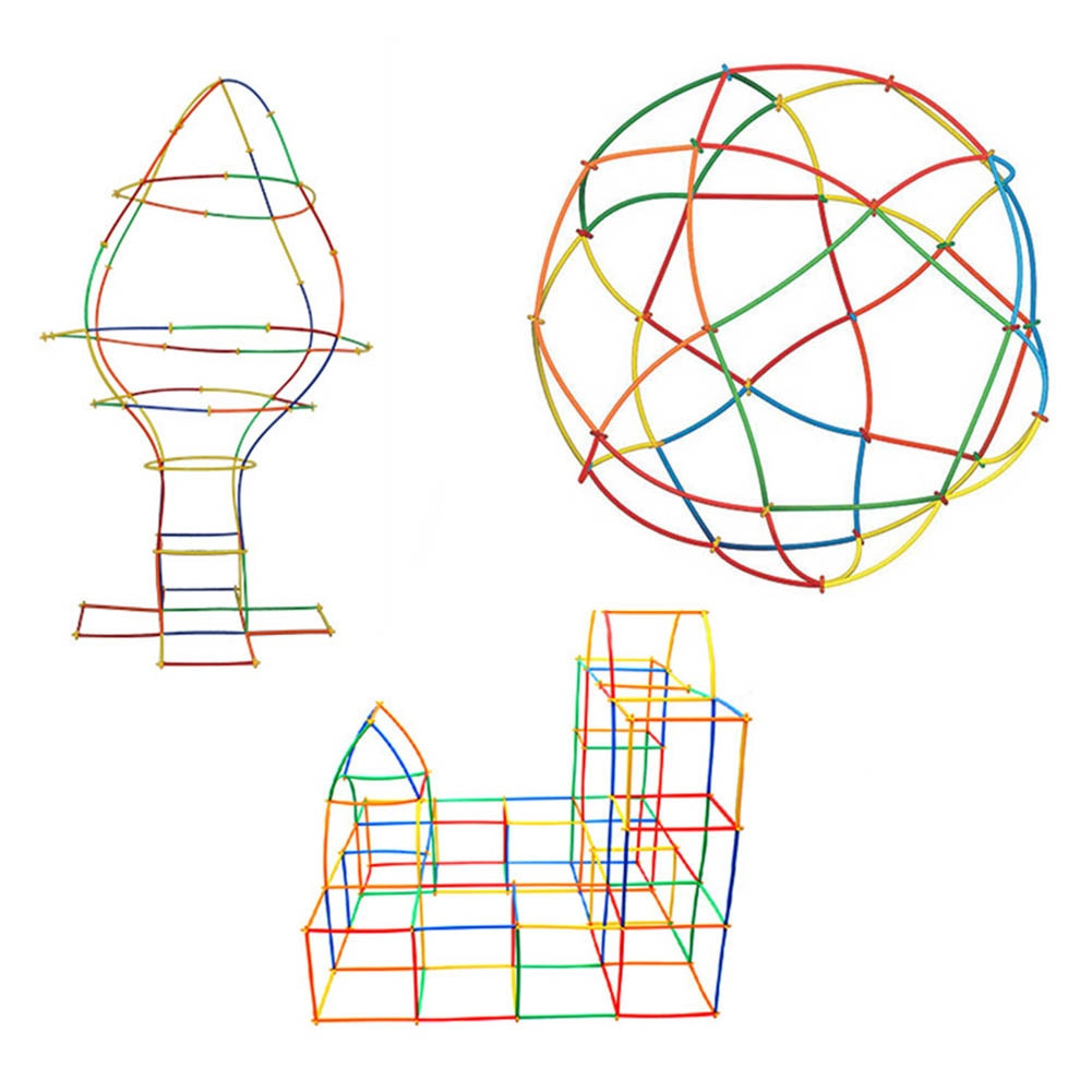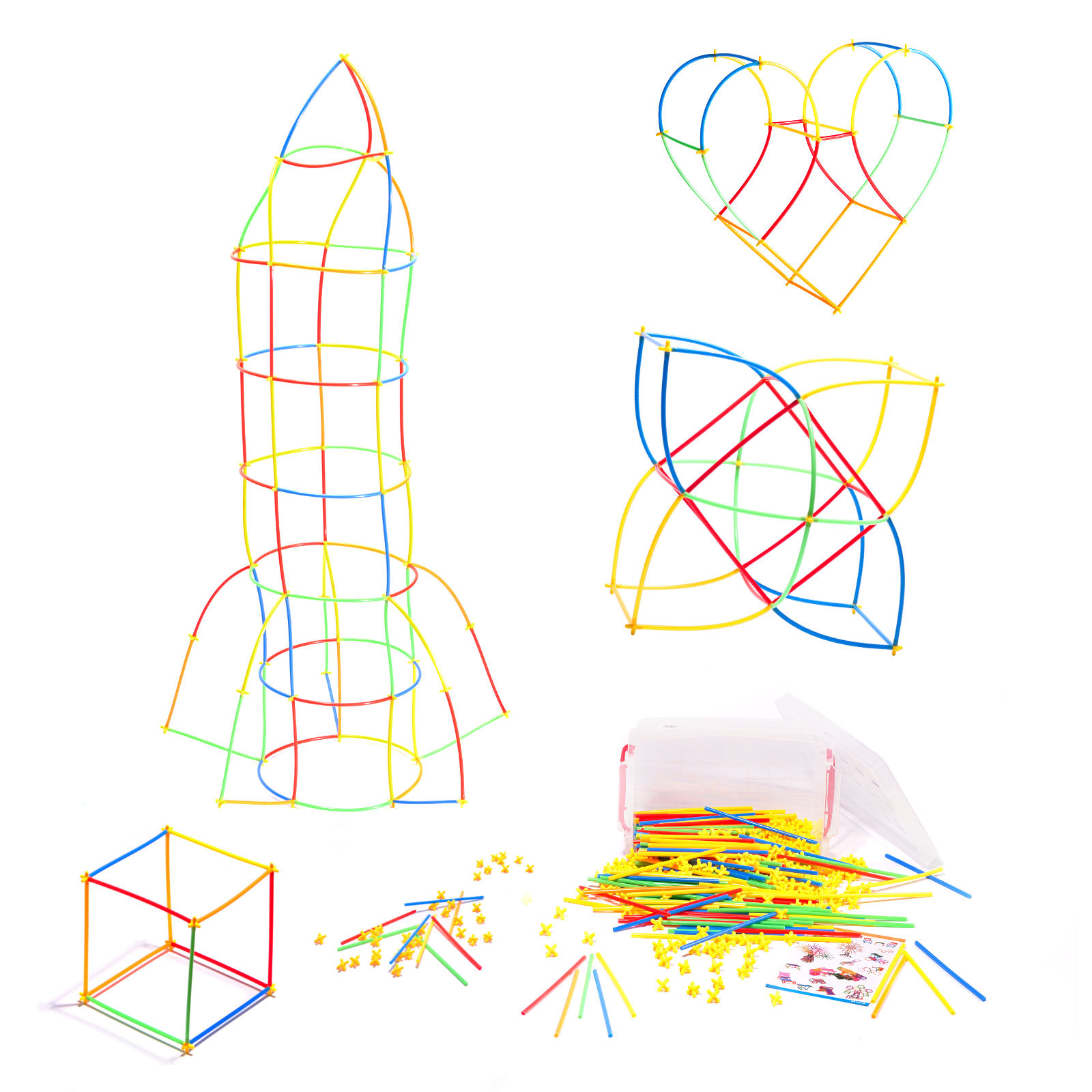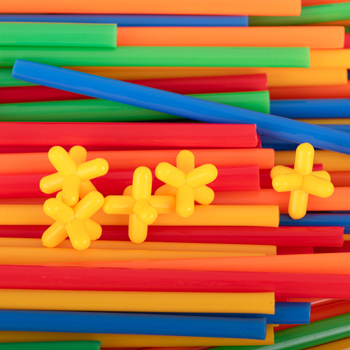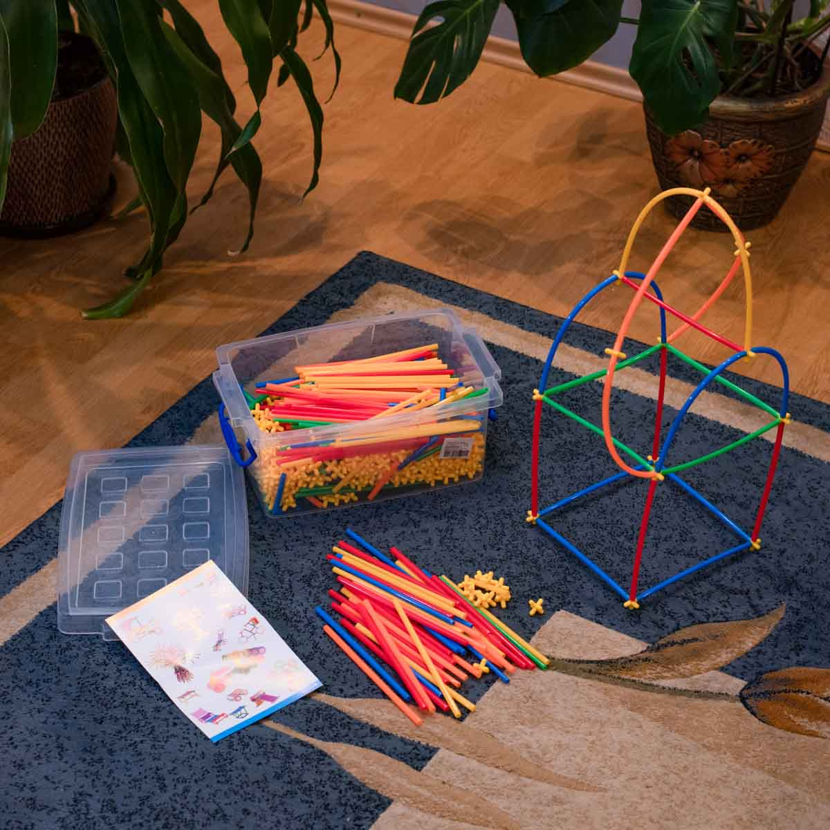Sada plastových a barevných stavebních brček v krabici. Hračka umožní rozvoj logického myšlení, manuální zručnosti a učení se trpělivosti. Sada obsahuje celkem 700 prvků, tj. slámek a konektorů. Délka brček: 6 a 17 cm.