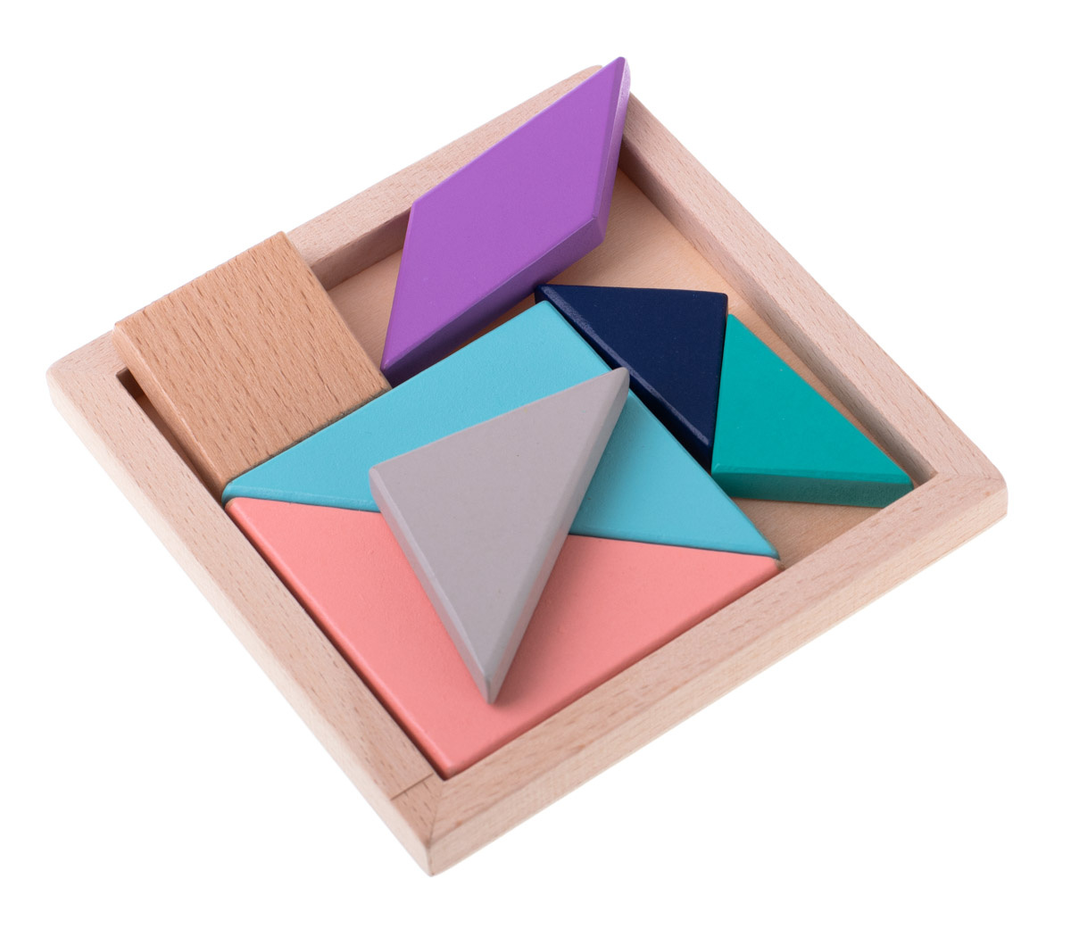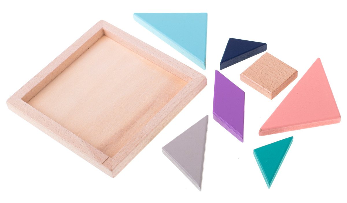 Barevné puzzle ze dřeva. Hra spočívá v uspořádání jednotlivých prvků tak, aby tvořily souvislý celek. Z kostek lze vytvořit nejrůznější vzory, přičemž limitem je pouze vaše fantazie a počet dílků.