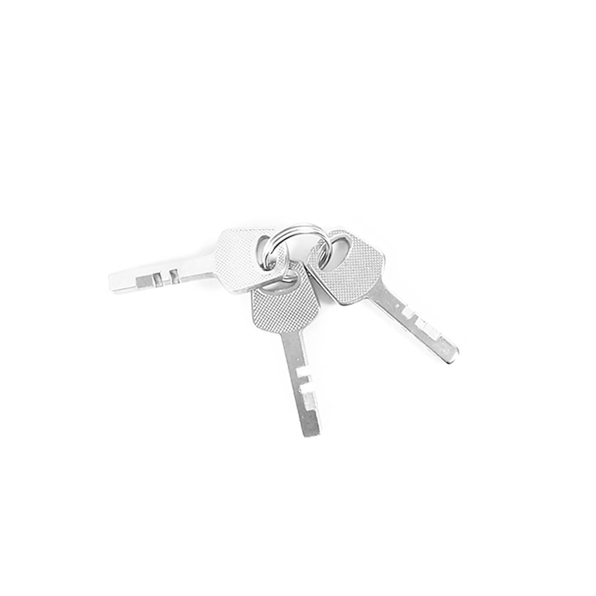 Zámek je vybaven klíčovým zámkem pro snadné otevírání a zavírání. Součástí balení jsou 3 ks klíčů, takže máte vždy náhradní klíč v případě, že byste jeden ztratili. Klíčový zámek také zajišťuje, že zámek nelze otevřít bez správného klíče, což zvyšuje jeho bezpečnost.