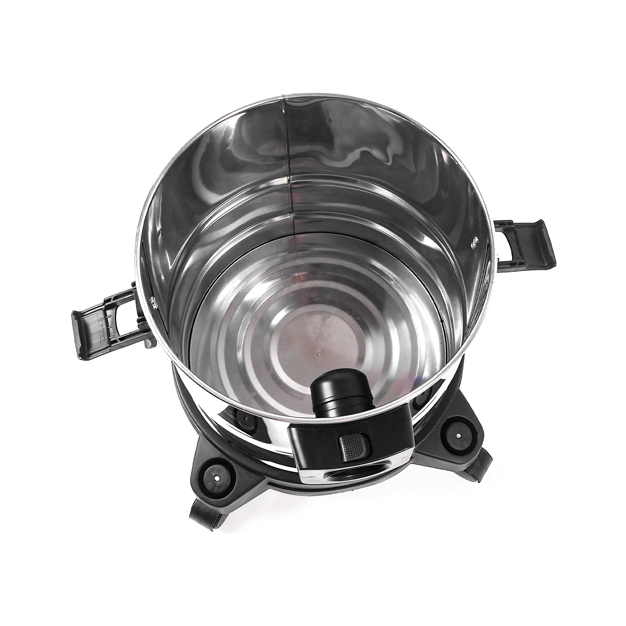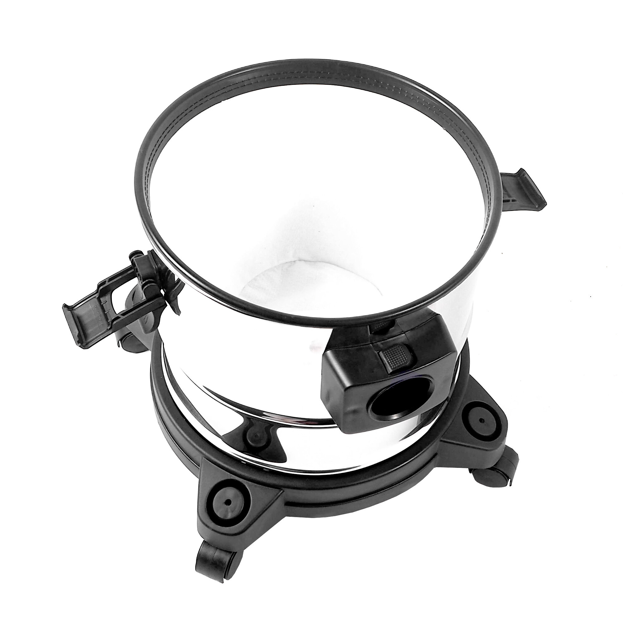 Nerezová nádoba o objemu 20 litrů je nejen prostorná, ale také velmi odolná. Tento materiál zajišťuje dlouhou životnost vysavače a odolnost vůči korozi a mechanickému poškození.