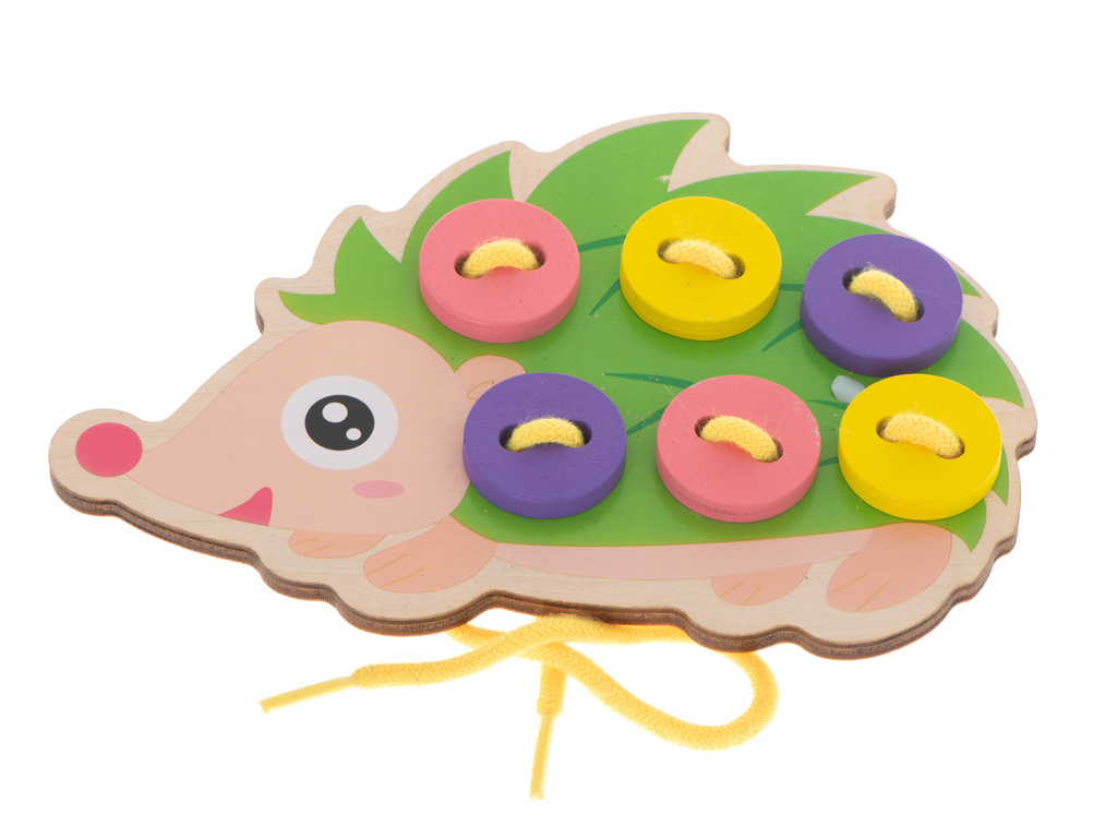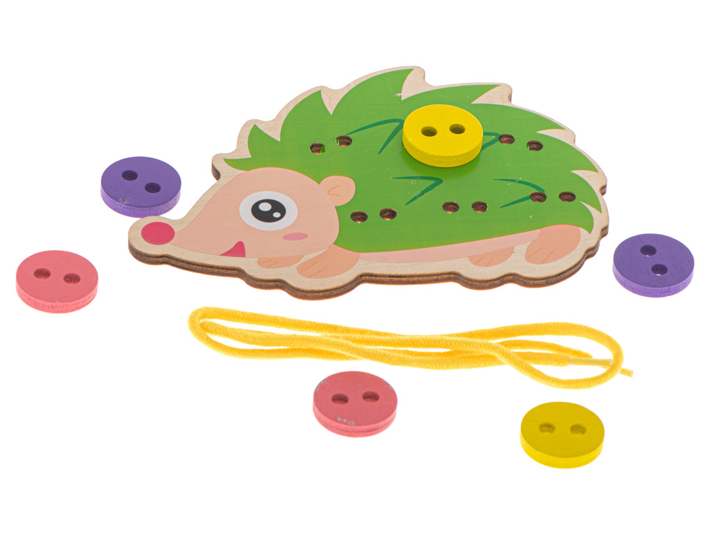Rozkošný ježek ztratil knoflíky. Pomozte je najít a pevně je připevněte k jehlám, aby se už neztratily. Hra spočívá v proplétání provázku otvory tak, aby se všechny knoflíky připevnily na jehly ježka.